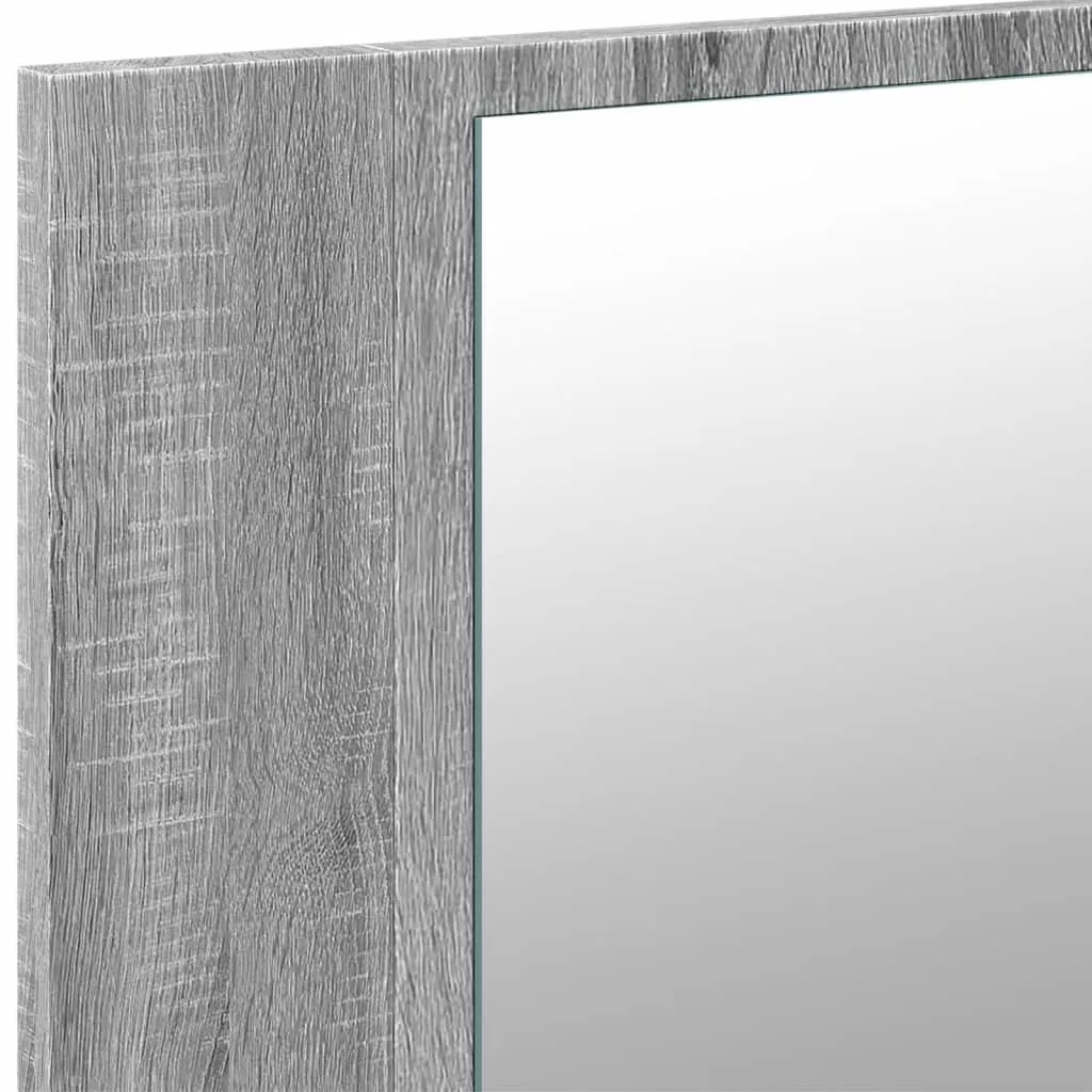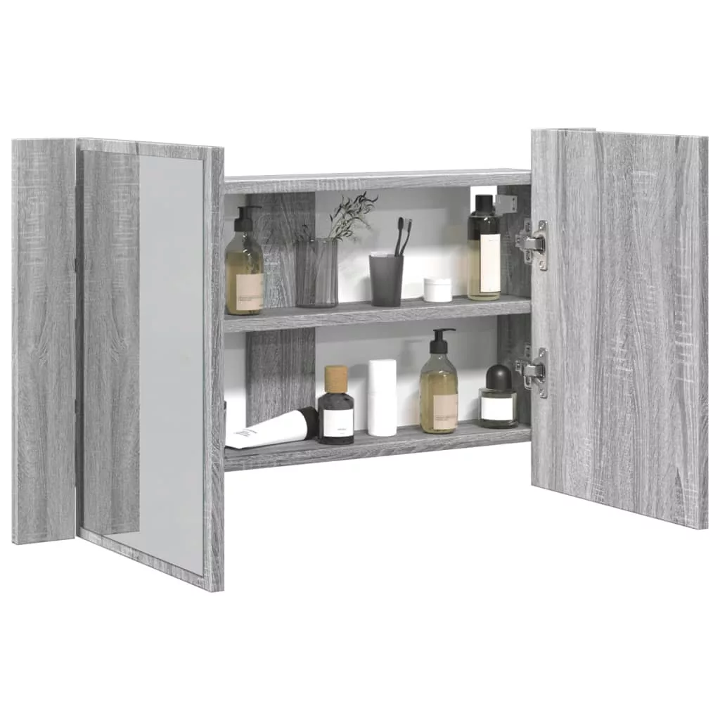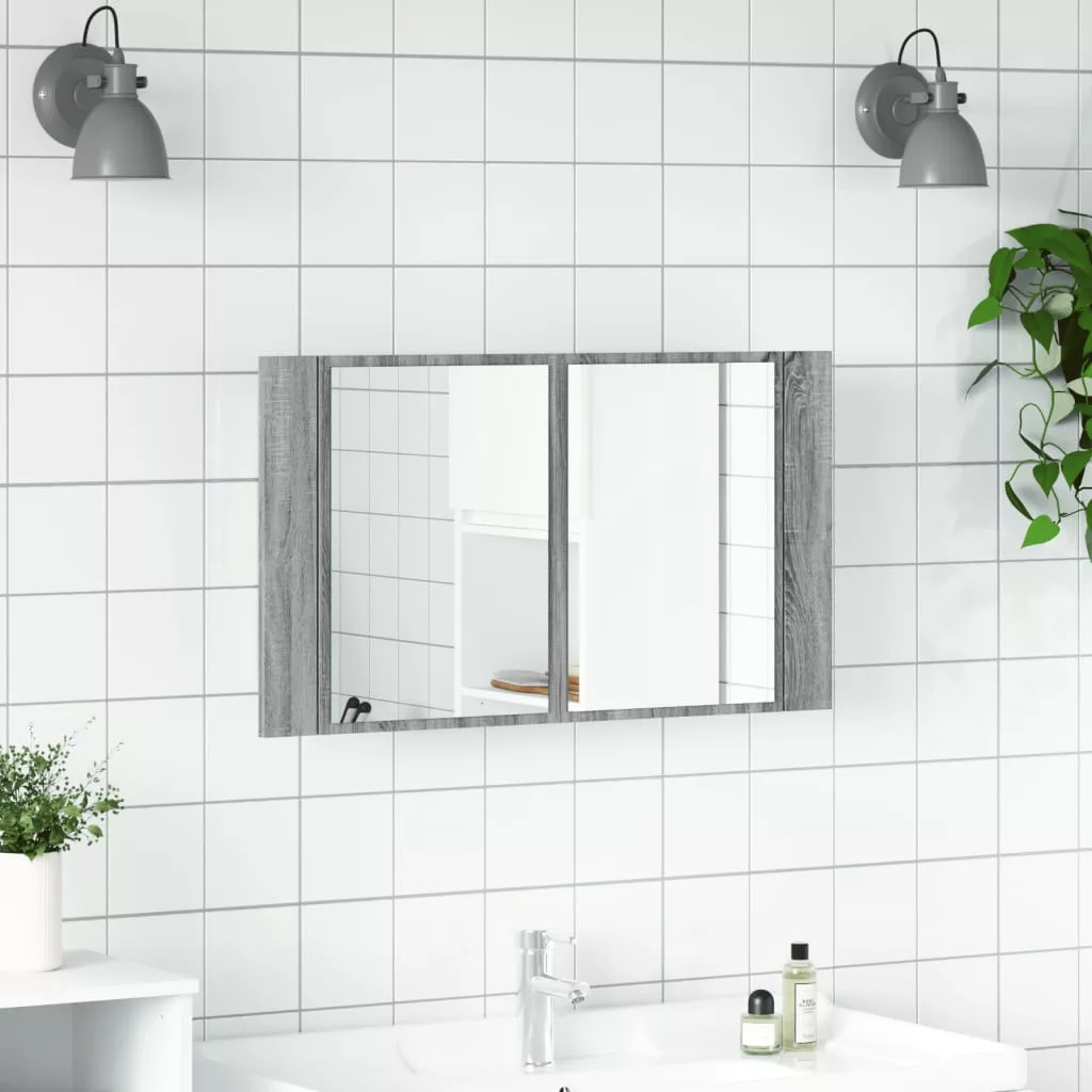 szürke sonoma akril LED-es tükrös fürdőszobaszekrény 80x12x45cm