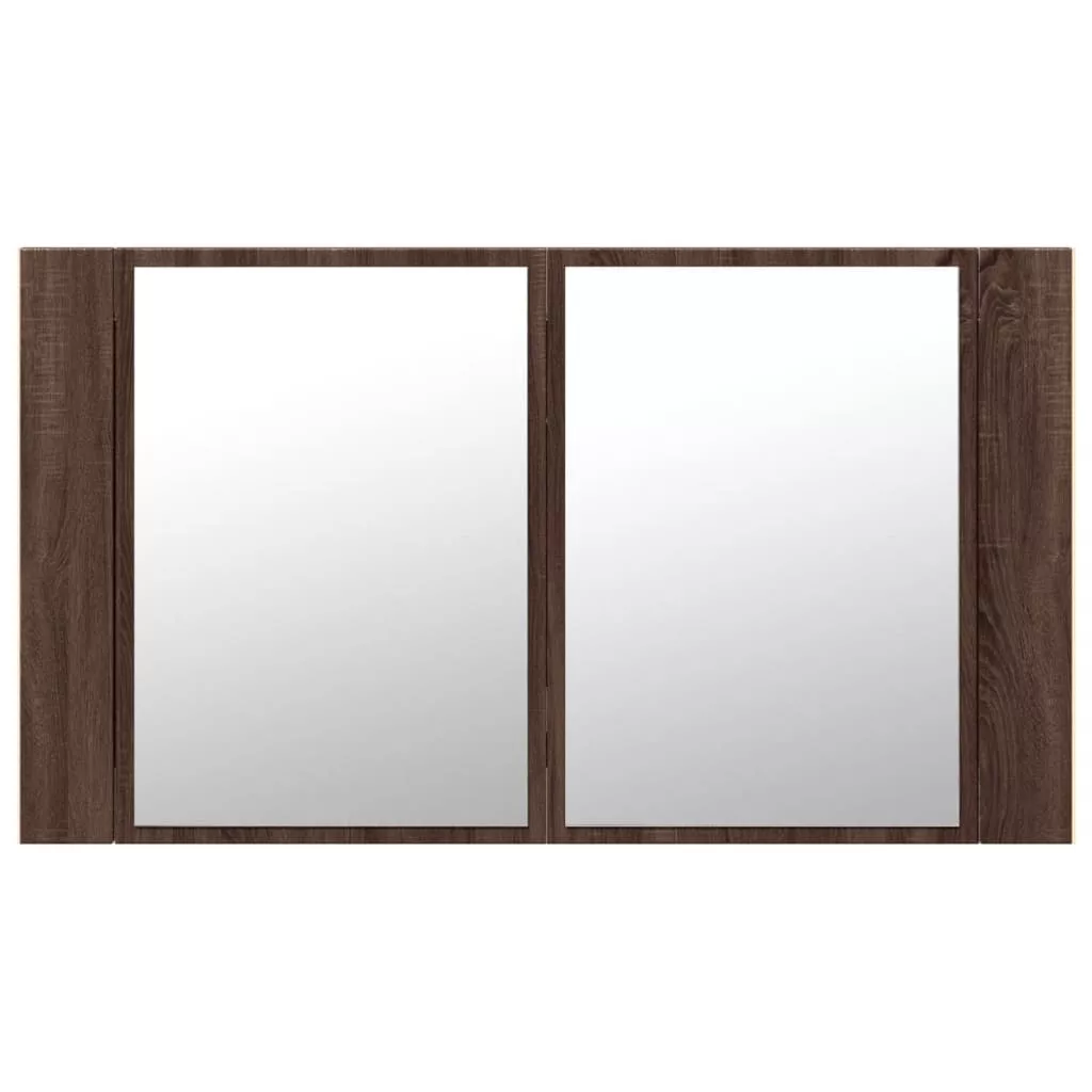 barna tölgy akril LED-es tükrös fürdőszobaszekrény 80x12x45 cm