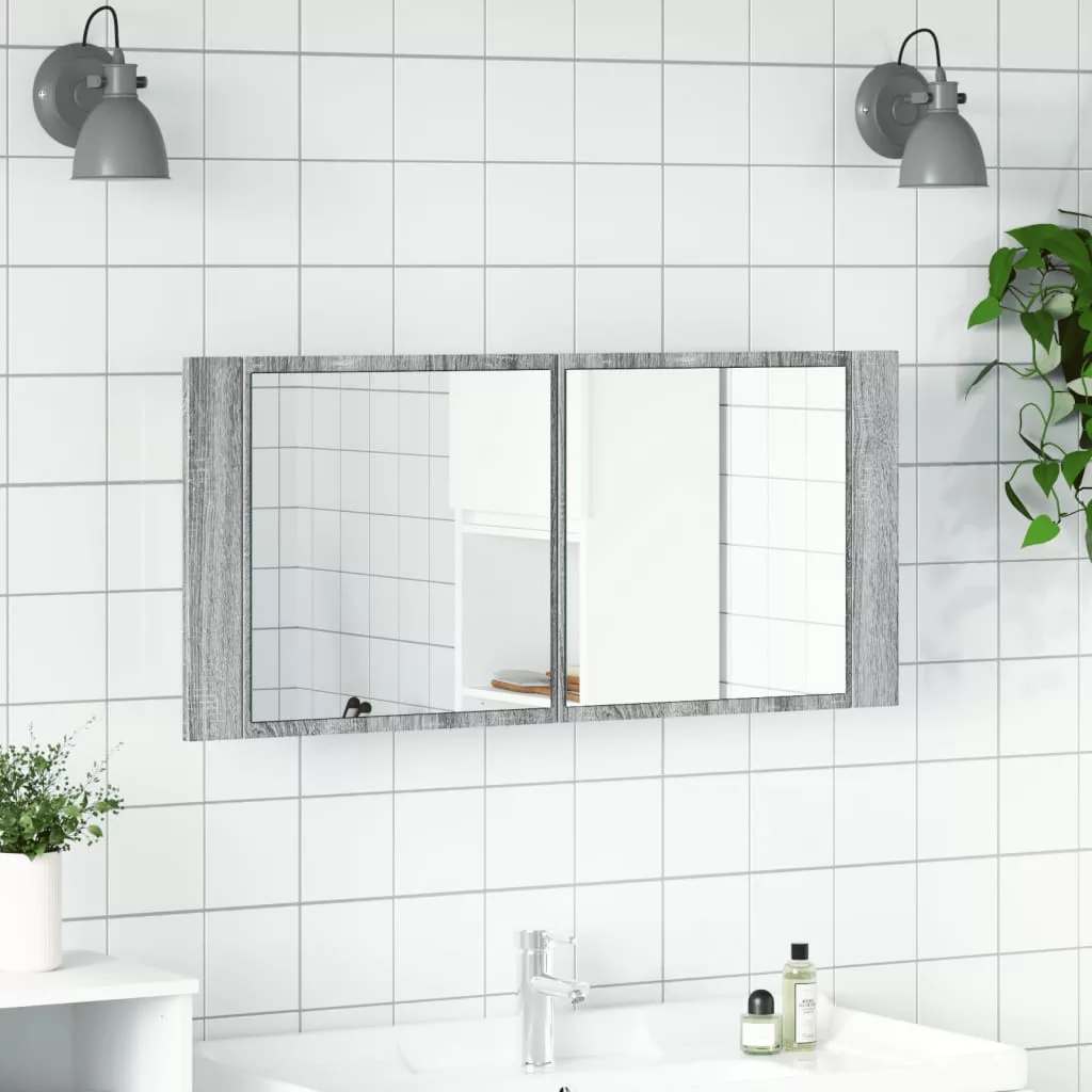 szürke sonoma LED-es tükrös fürdőszobaszekrény 100 x 12 x 45 cm