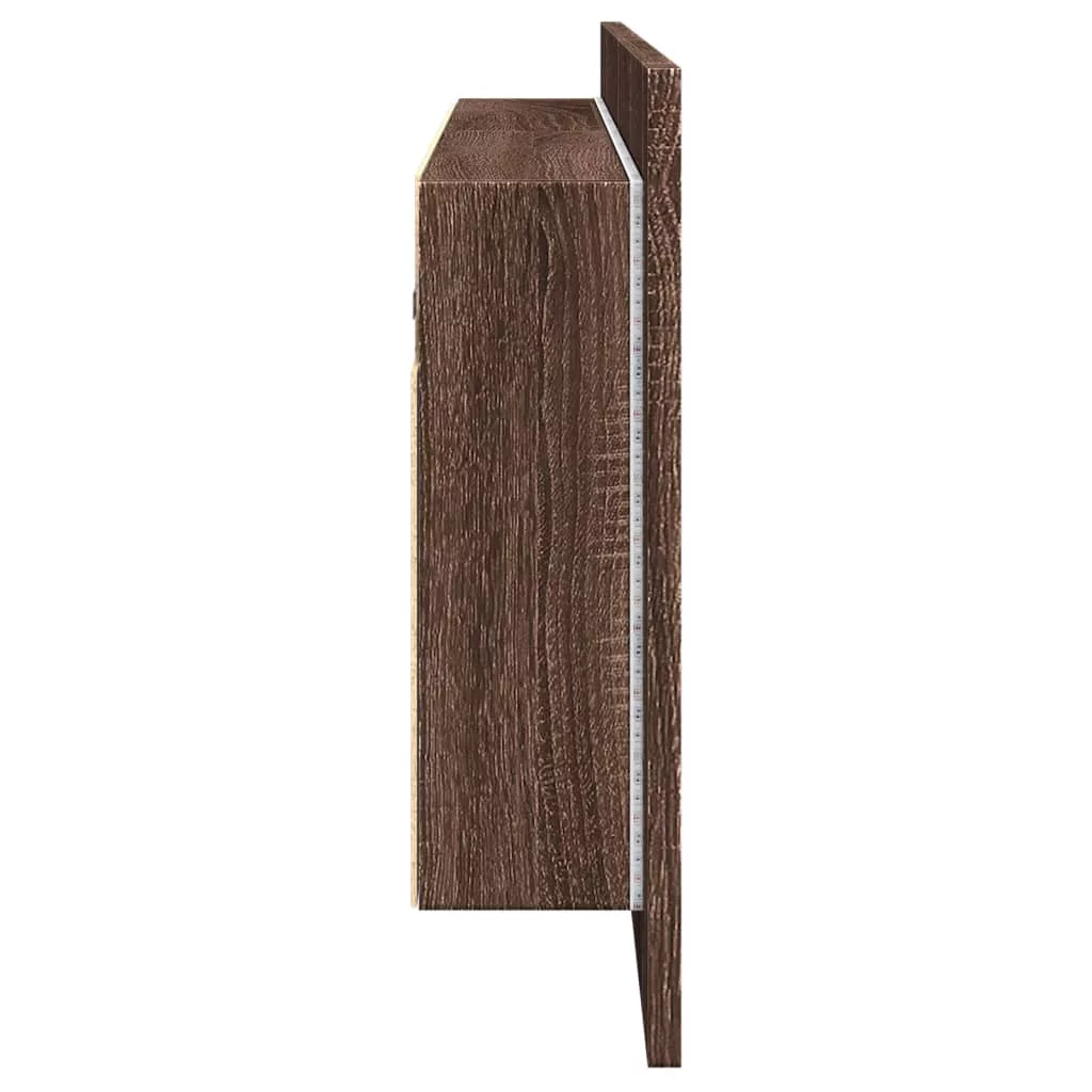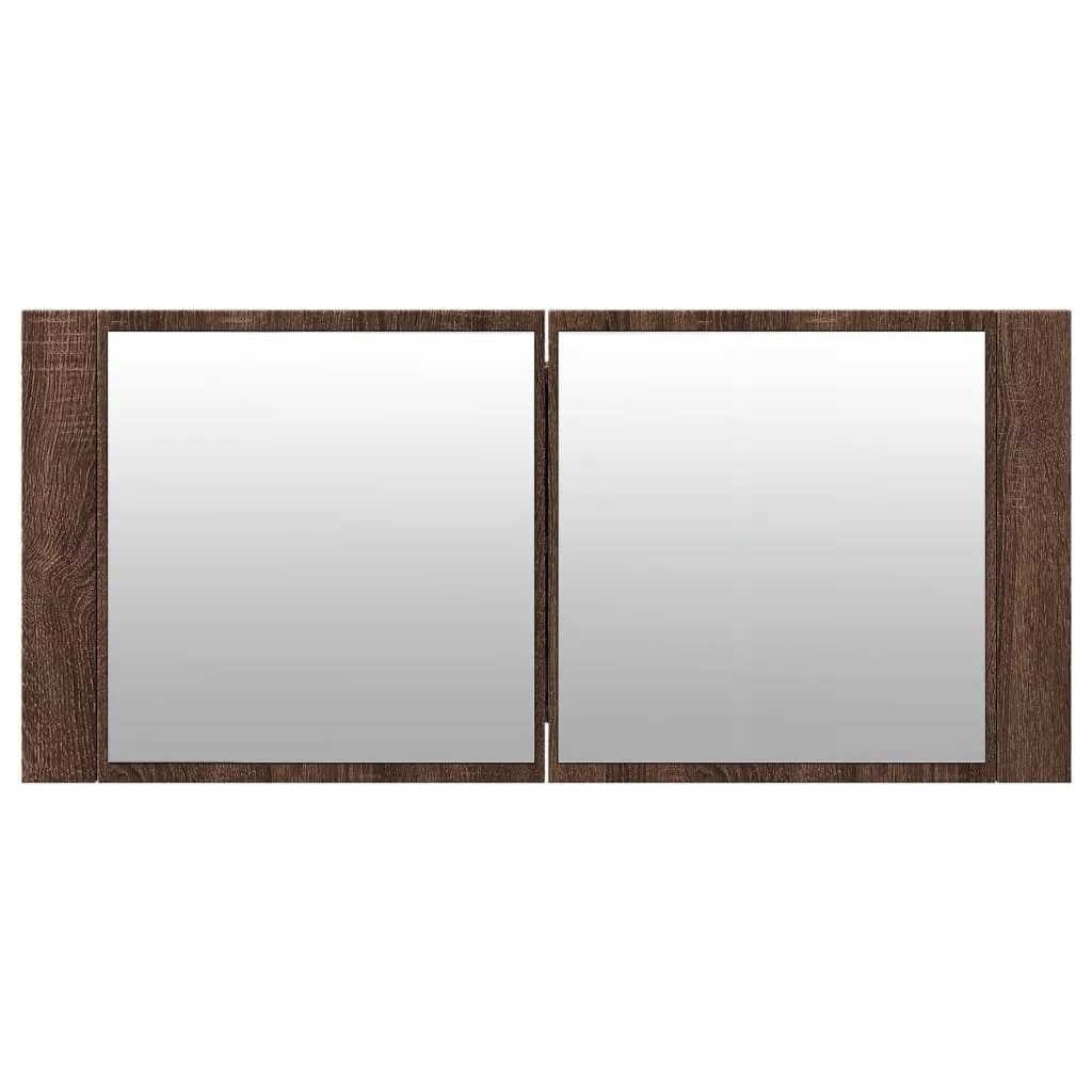 barna tölgyszínű LED-es tükrös fürdőszobaszekrény 100x12x45cm