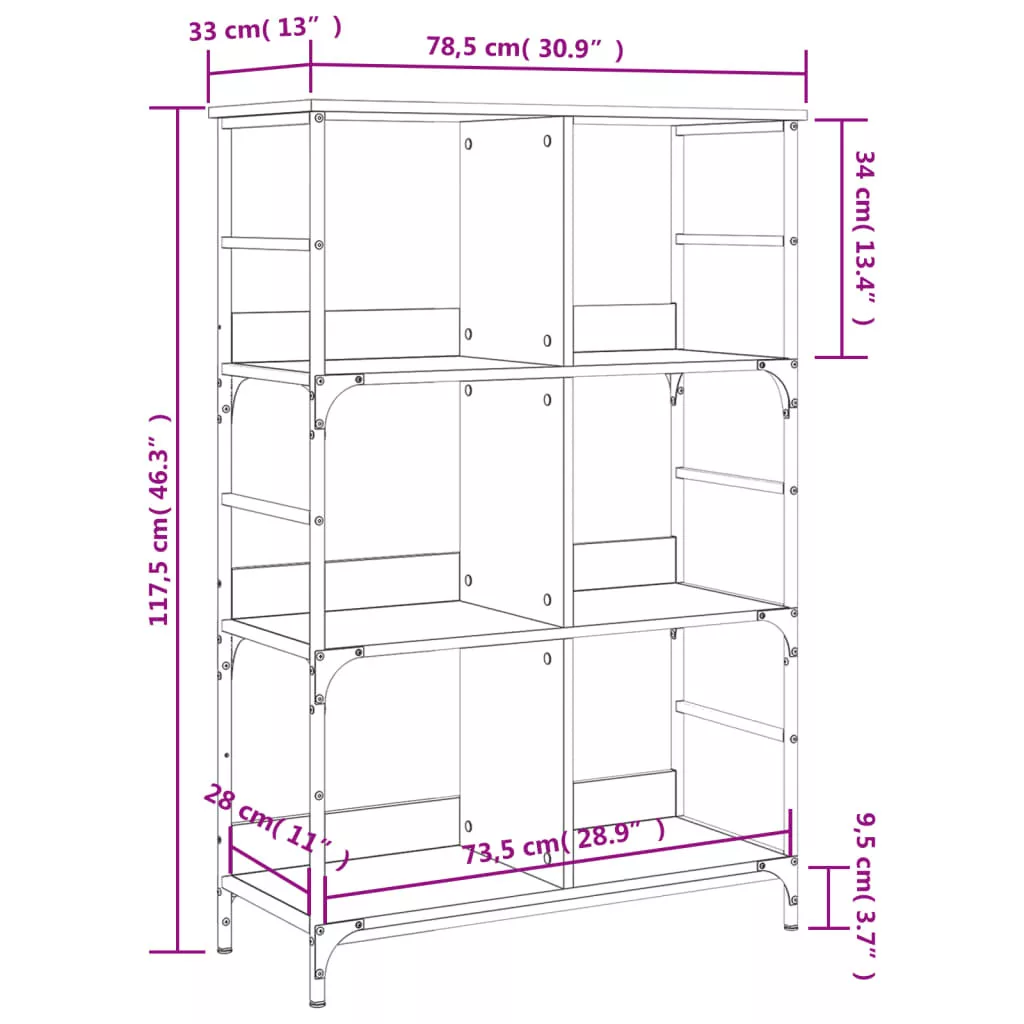 barna tölgyszínű szerelt fa könyvespolc 78,5 x 33 x 117,5 cm