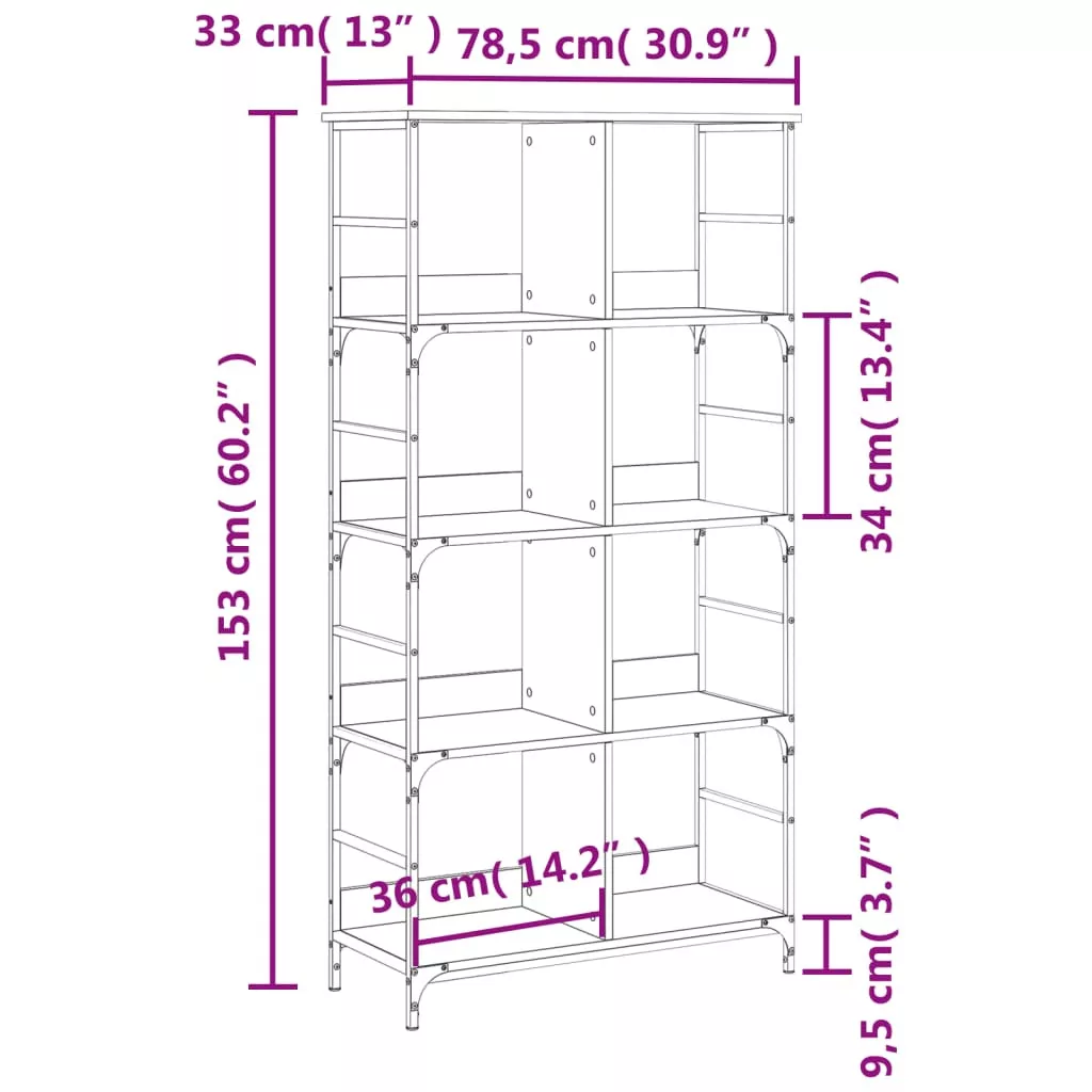 szürke sonoma színű szerelt fa könyvespolc 78,5 x 33 x 153 cm