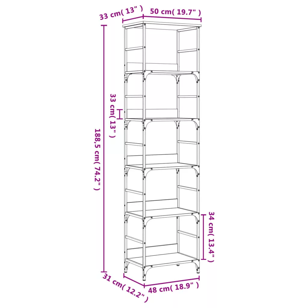 sonoma tölgy színű szerelt fa könyvespolc 50 x 33 x 188,5 cm