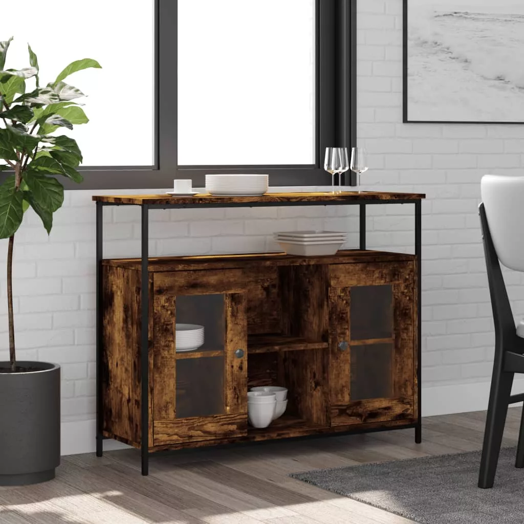 füstös tölgy színű szerelt fa tálalószekrény 100 x 35 x 80 cm