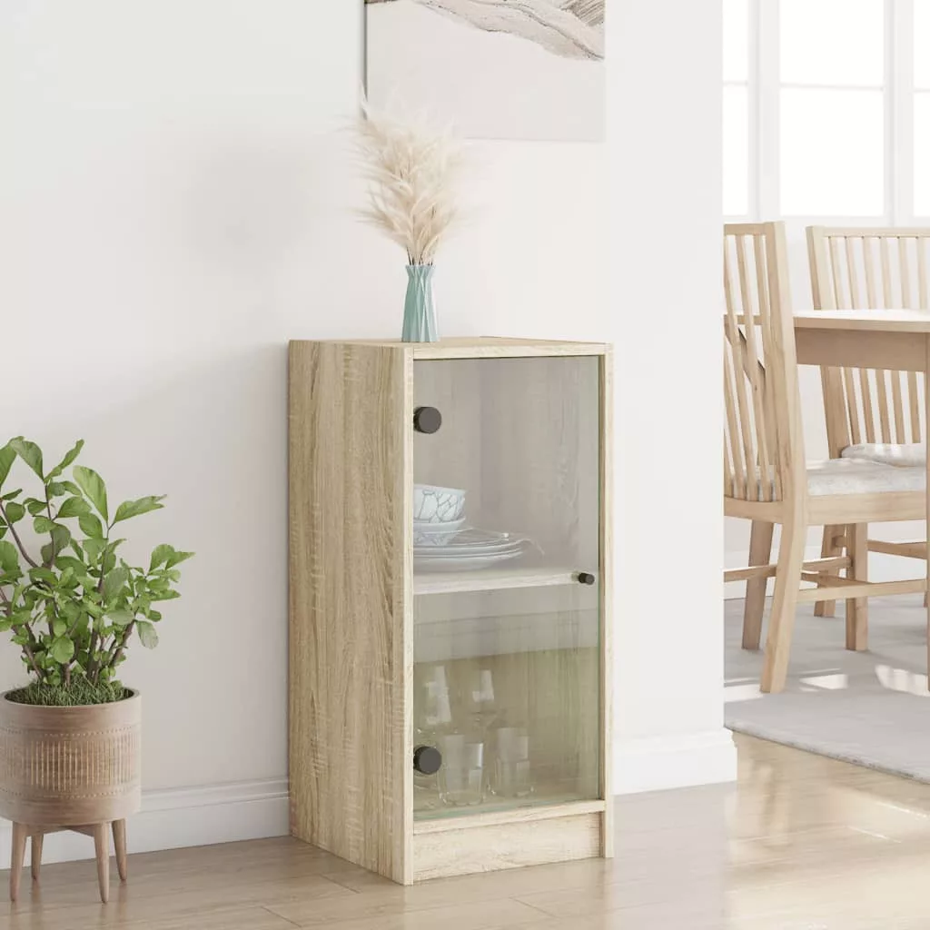 sonoma tölgy színű kisszekrény üvegajtókkal 35 x 37 x 75,5 cm