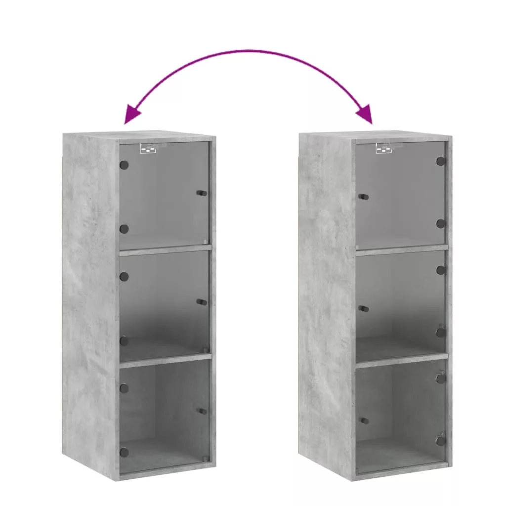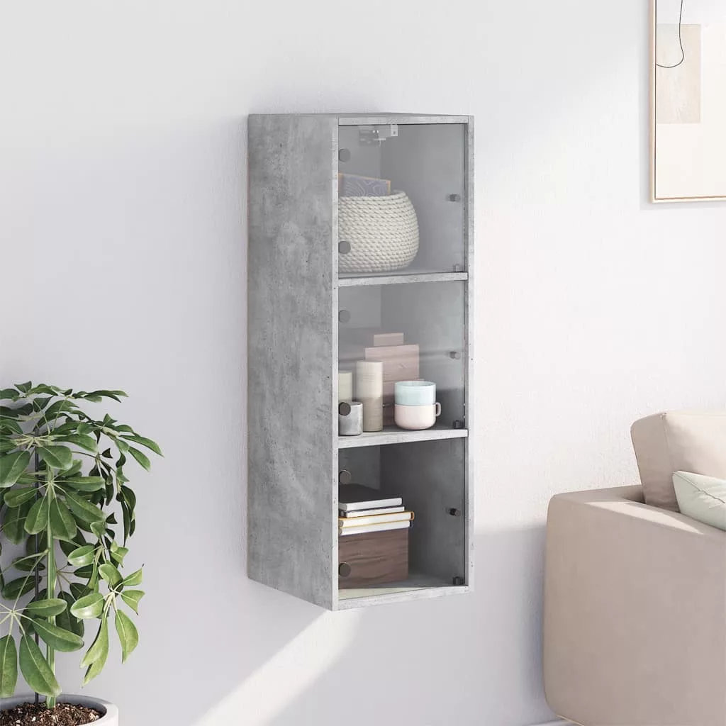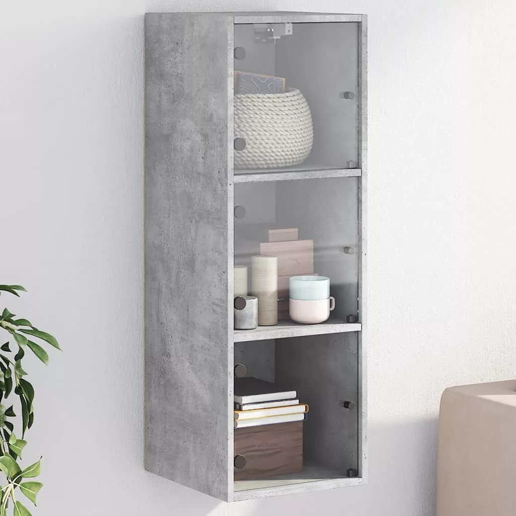 betonszürke faliszekrény üvegajtókkal 35x37x100 cm