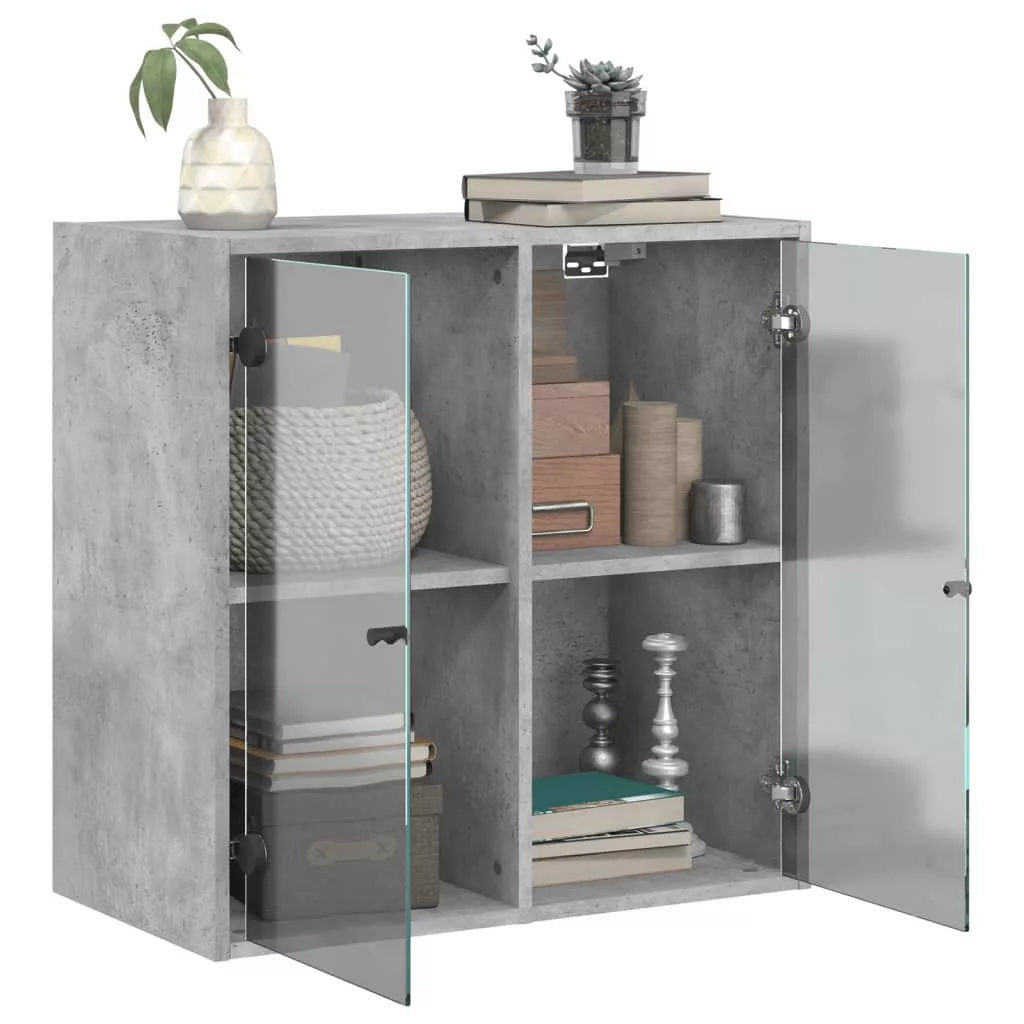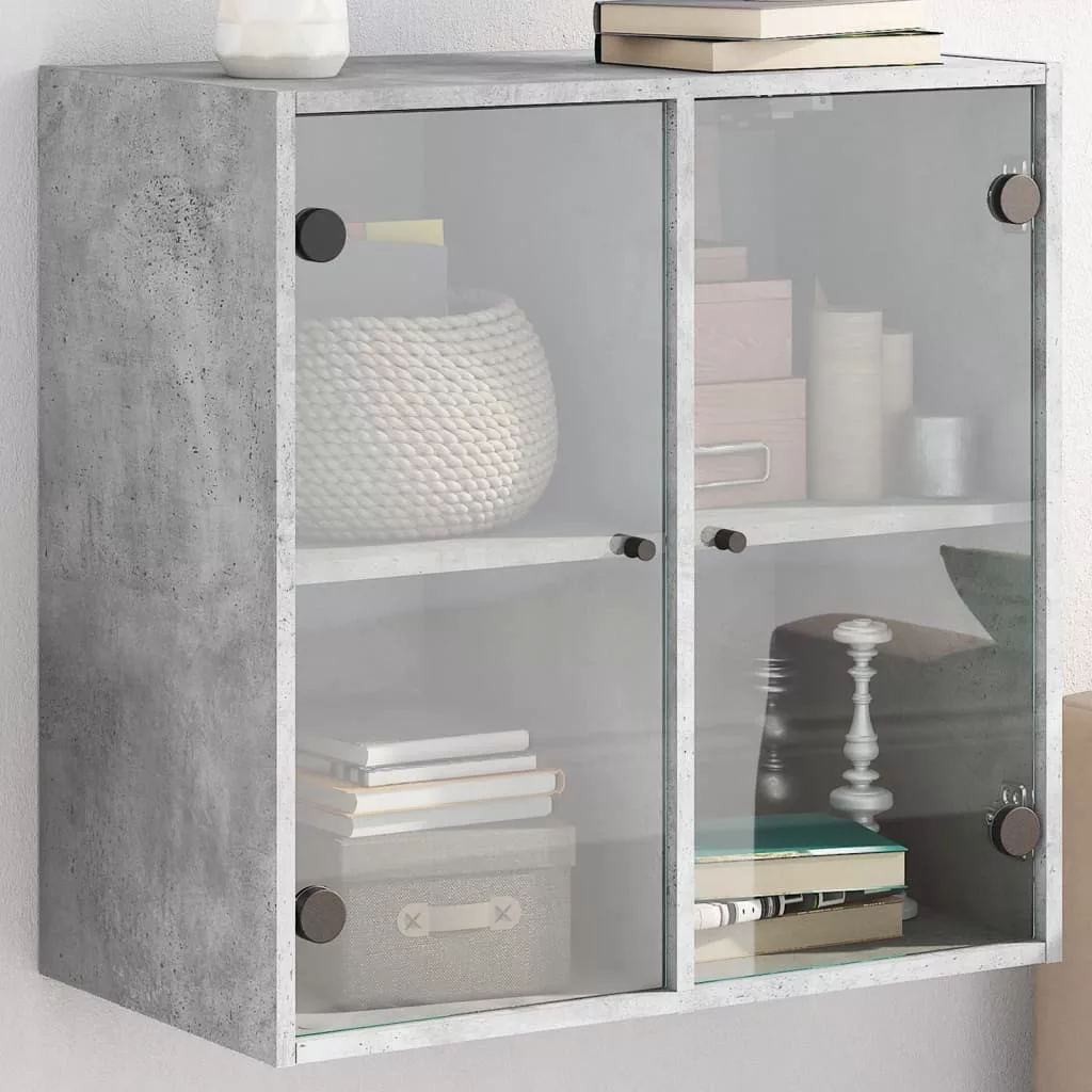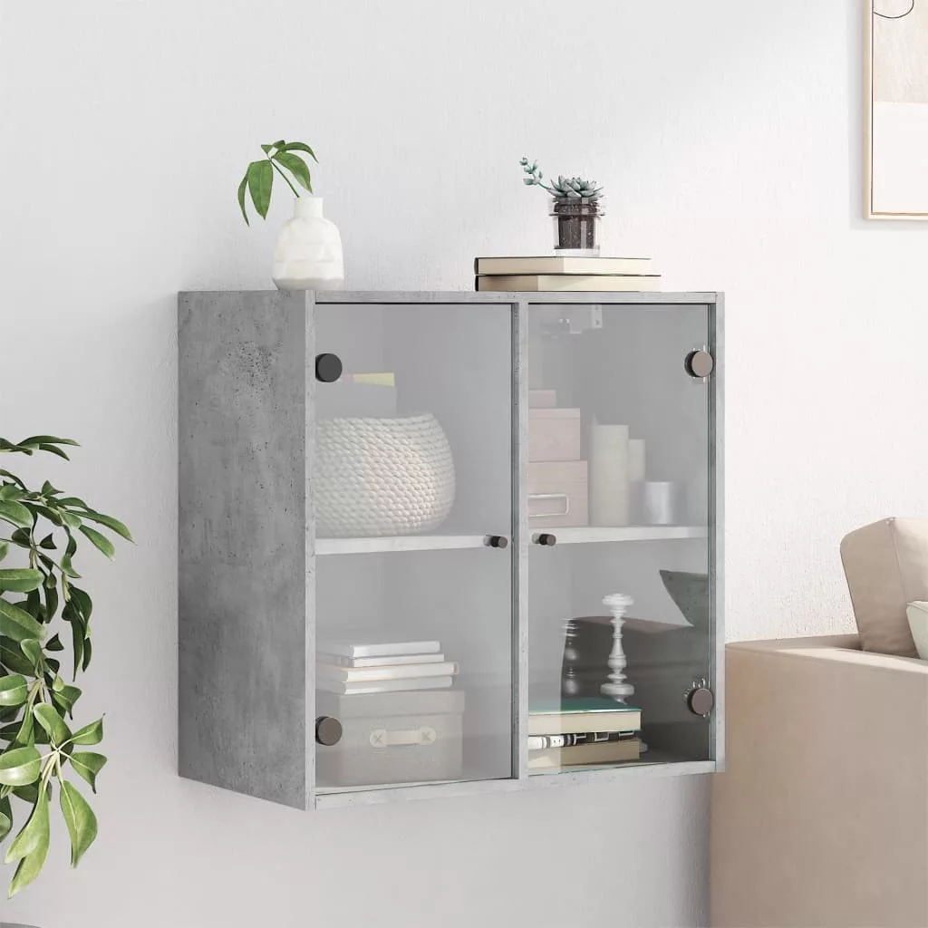 betonszürke faliszekrény üvegajtókkal 68 x 37 x 68,5 cm