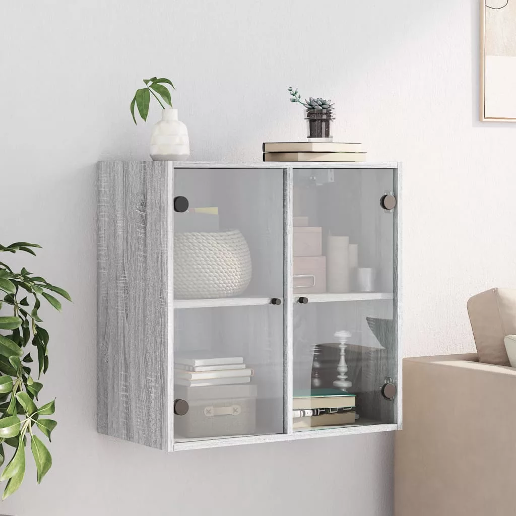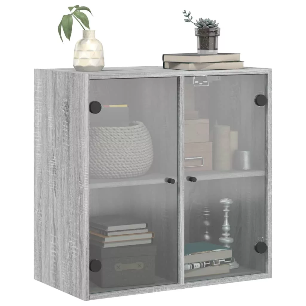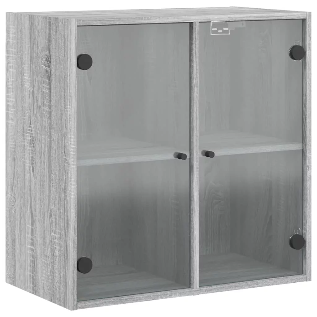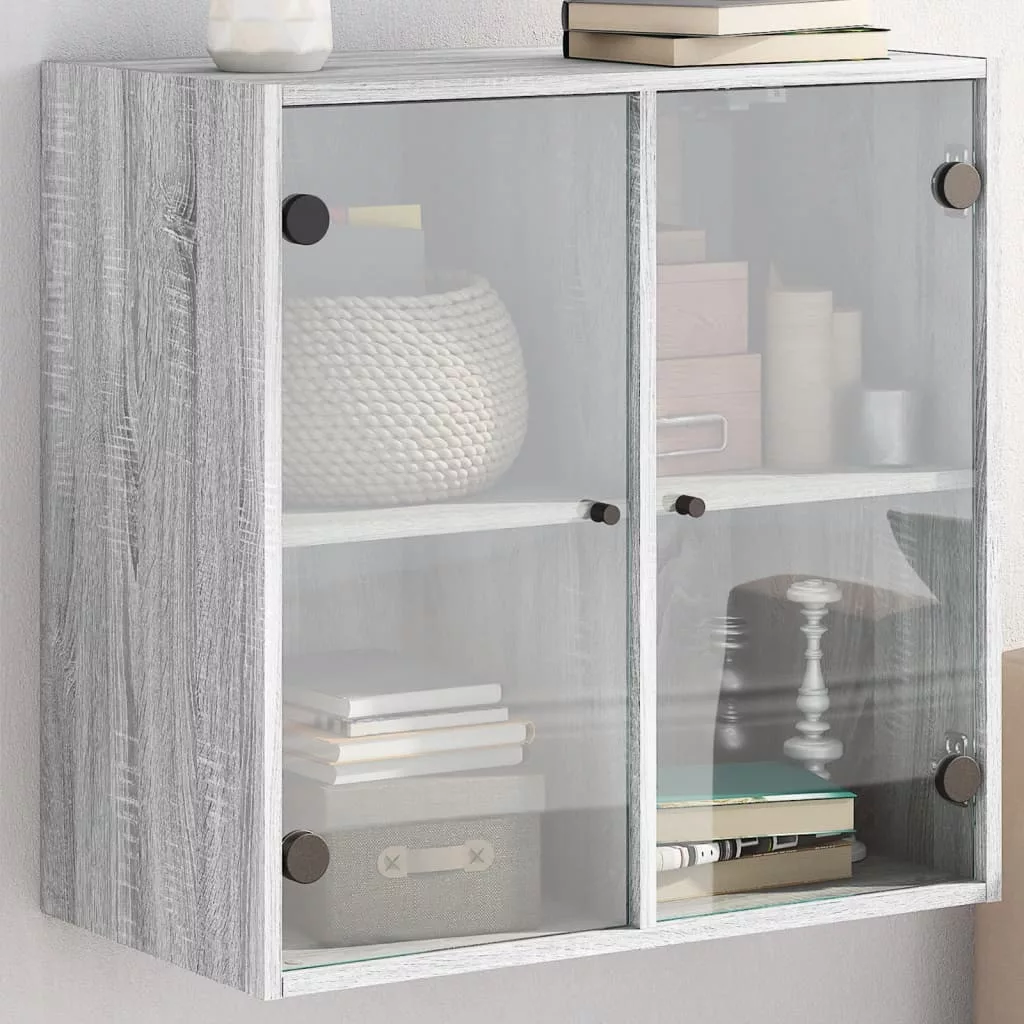 szürke sonoma színű faliszekrény üvegajtókkal 68 x 37 x 68,5 cm