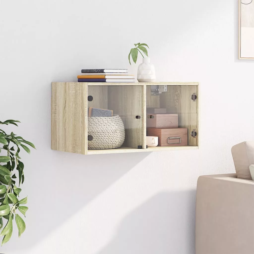 sonoma-tölgyszínű faliszekrény üvegajtókkal 68,5x37x35 cm