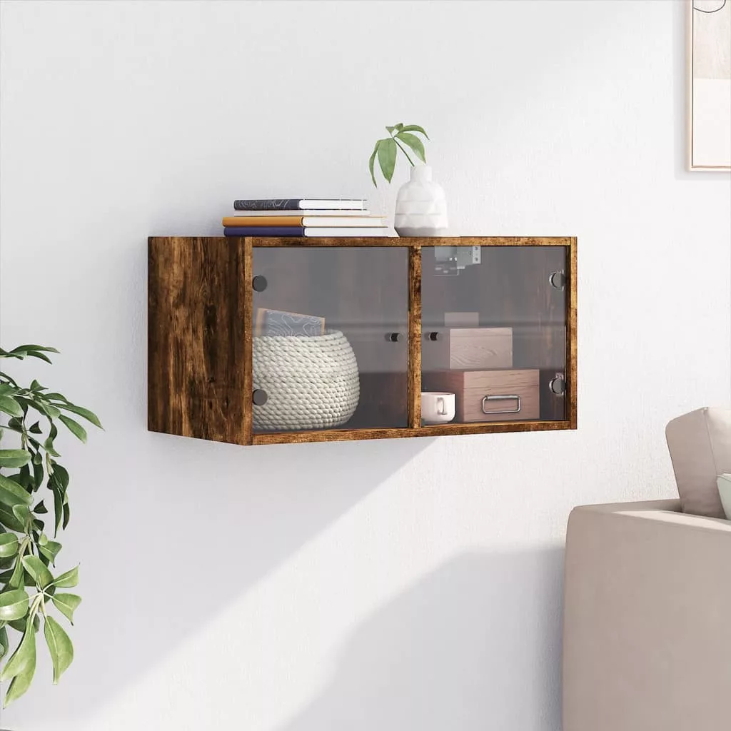 füstös tölgy színű faliszekrény üvegajtókkal 68,5x37x35 cm