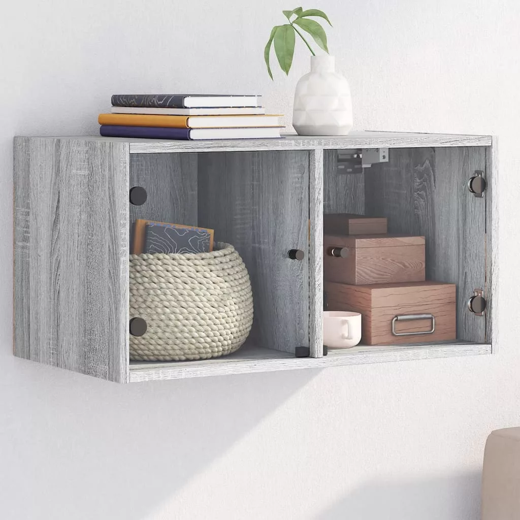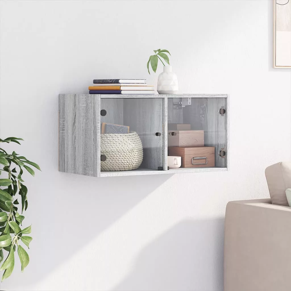 szürke sonoma színű faliszekrény üvegajtókkal 68,5x37x35 cm