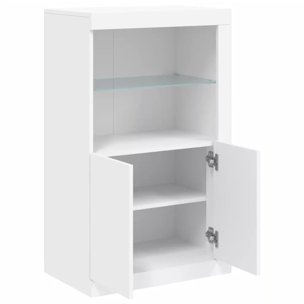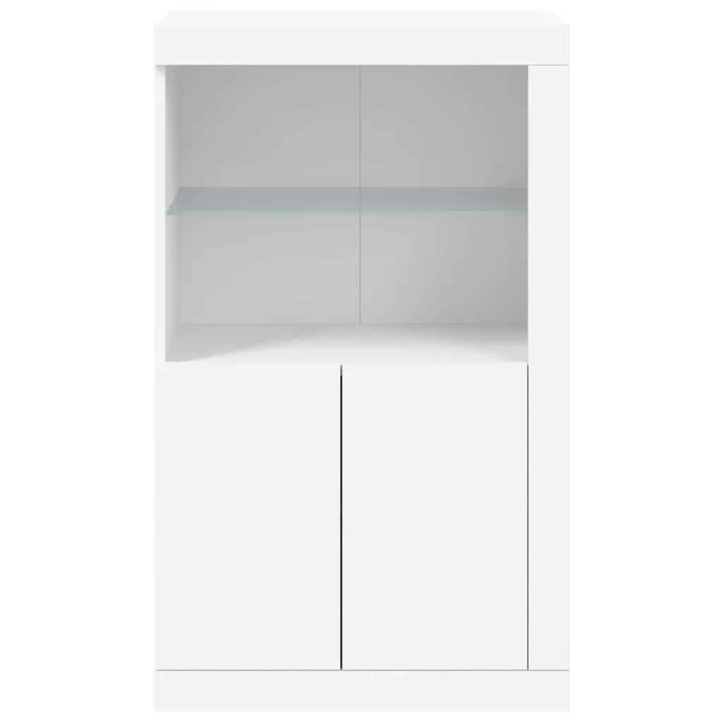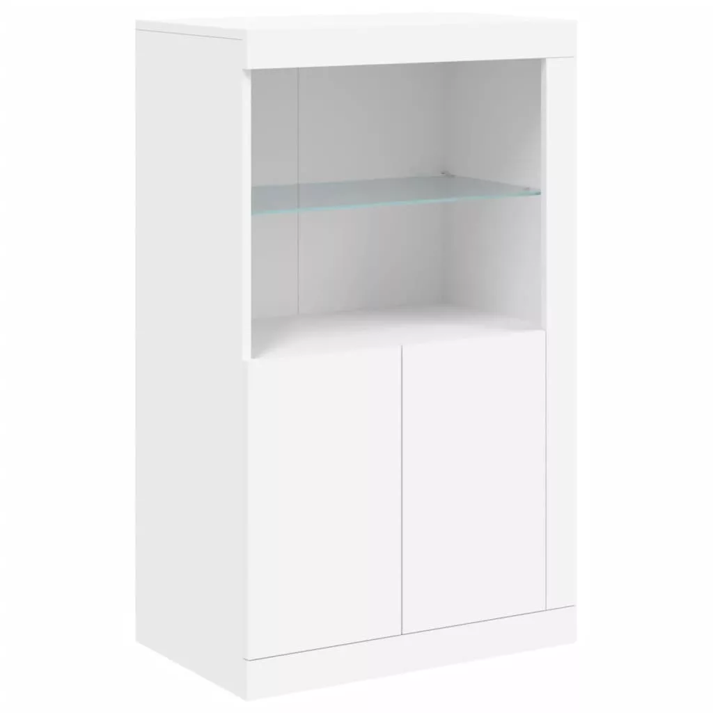 fehér szerelt fa tálalószekrény LED-világítással