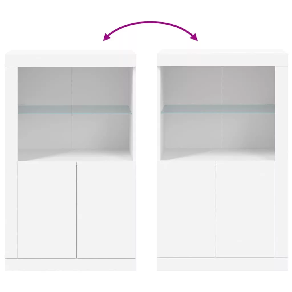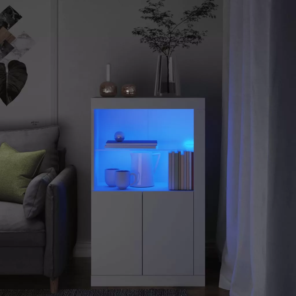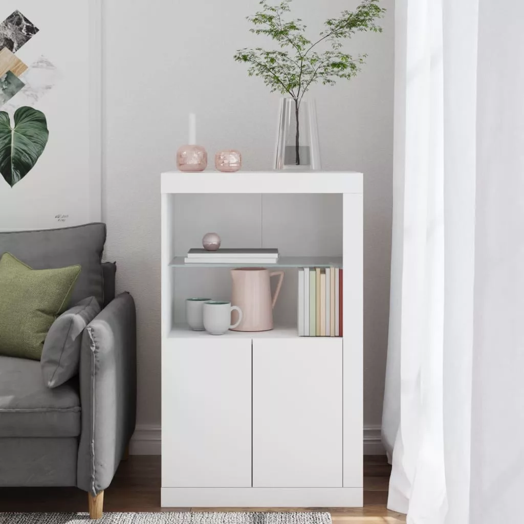 fehér szerelt fa tálalószekrény LED-világítással
