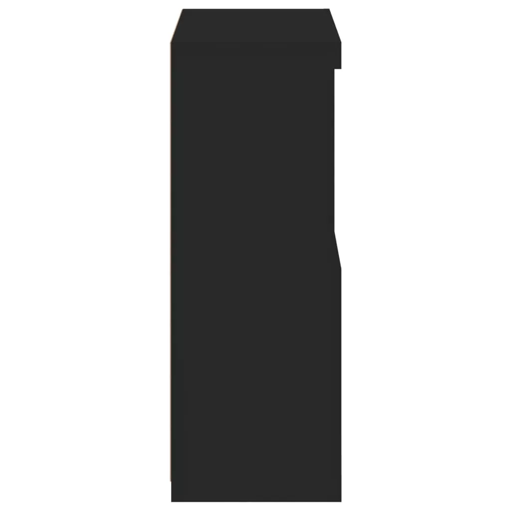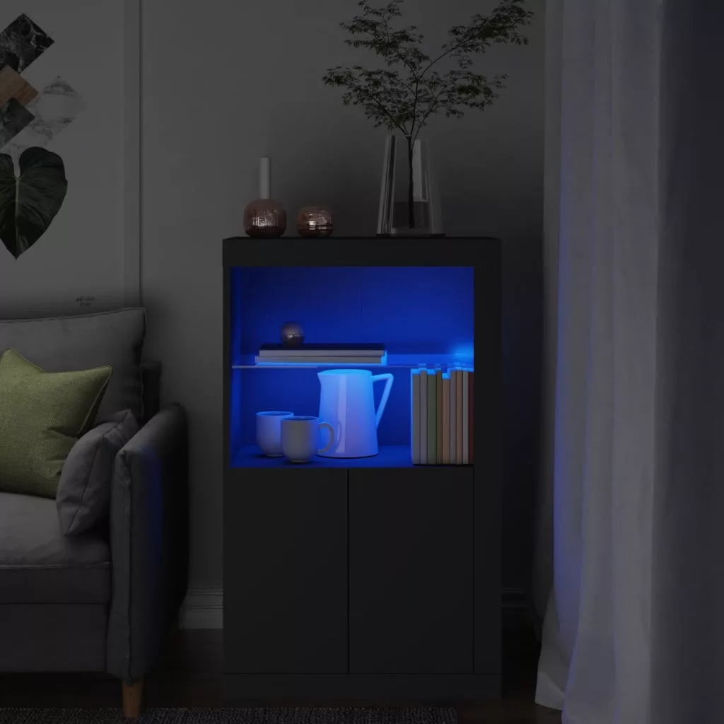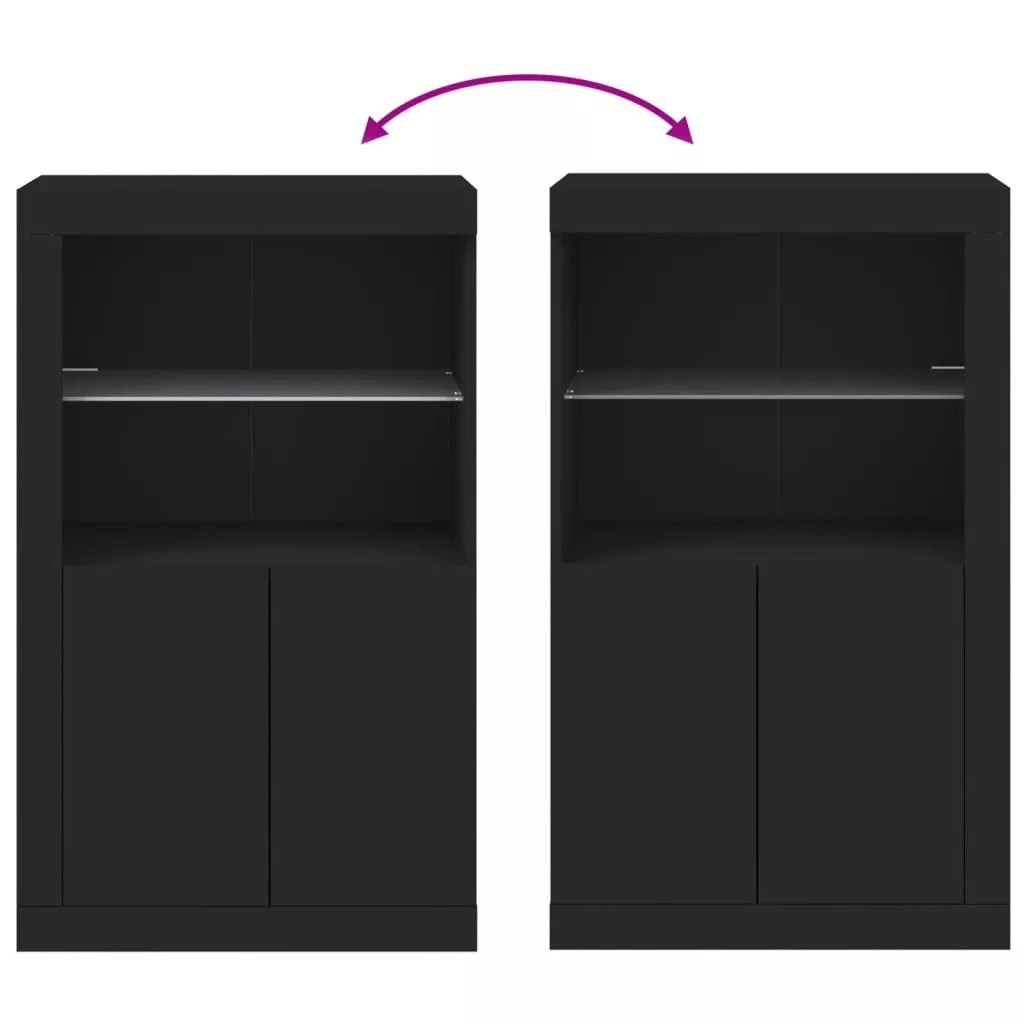 fekete szerelt fa tálalószekrény LED-világítással