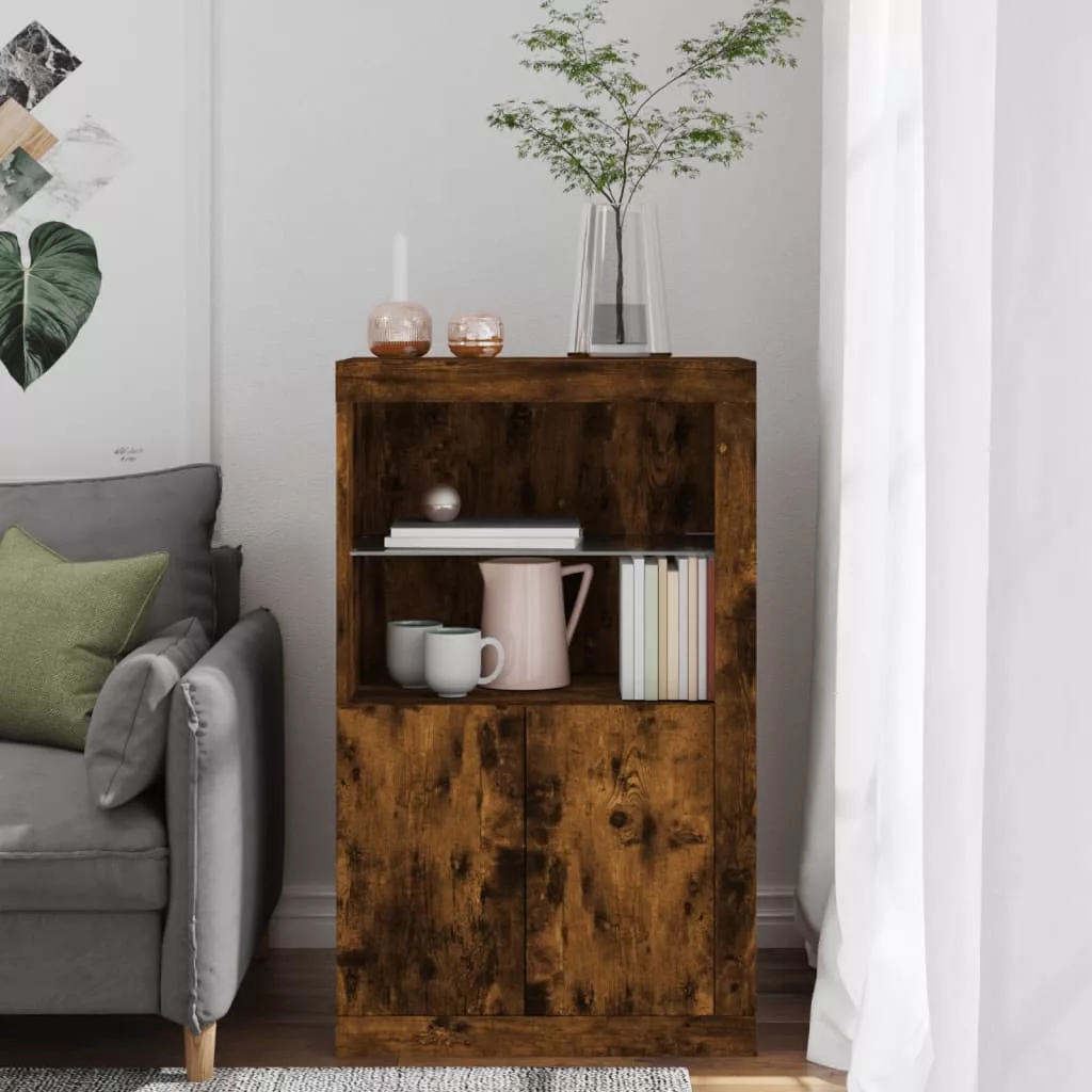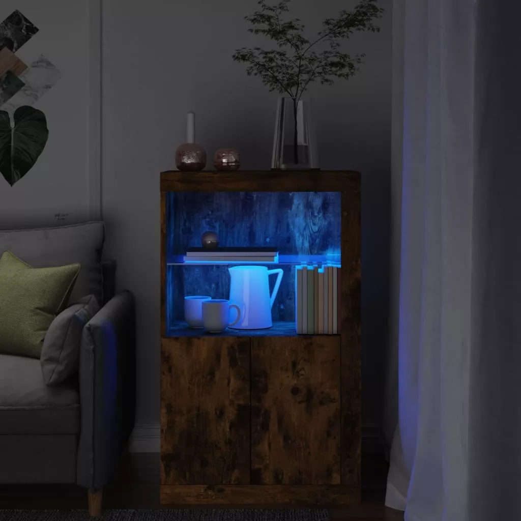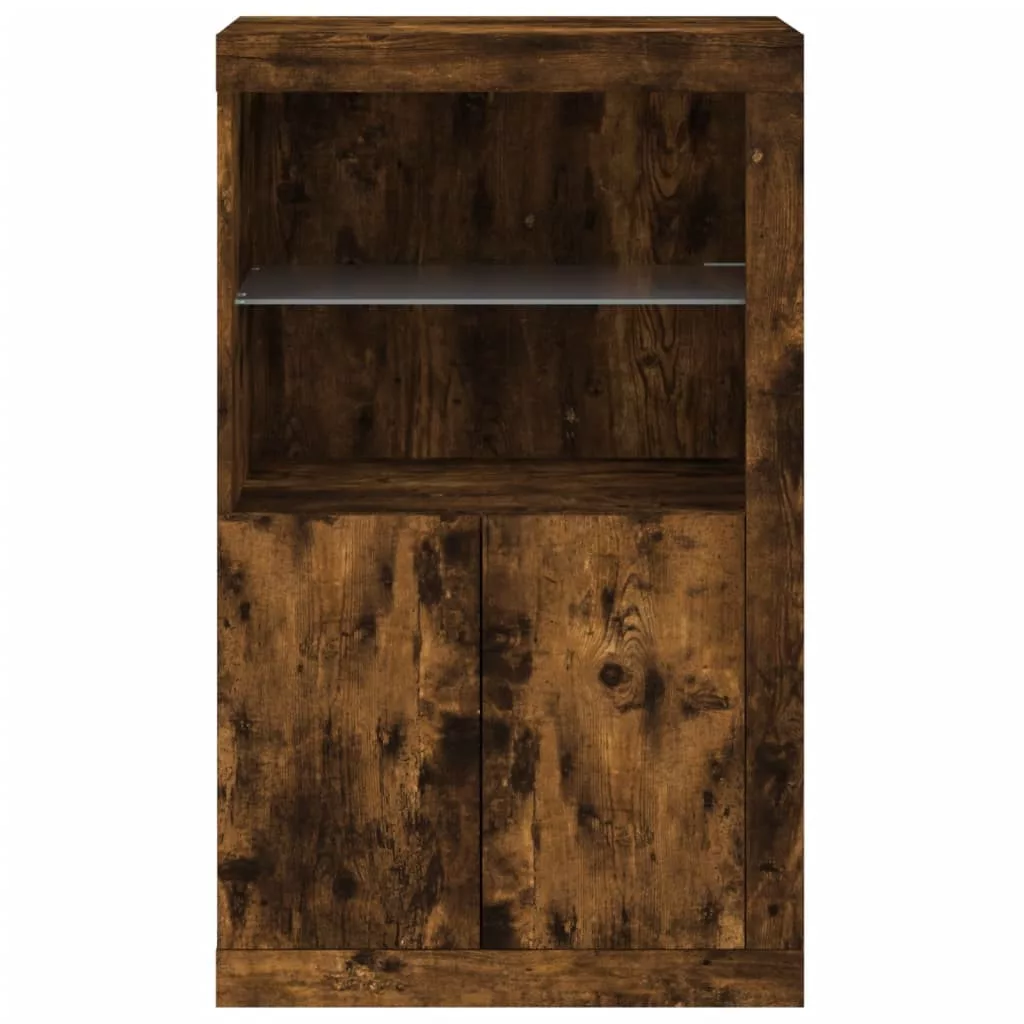 füstös tölgy színű szerelt fa tálalószekrény LED-világítással