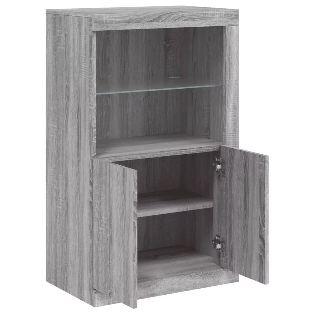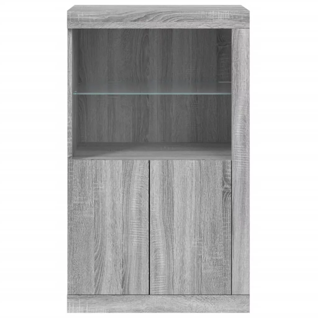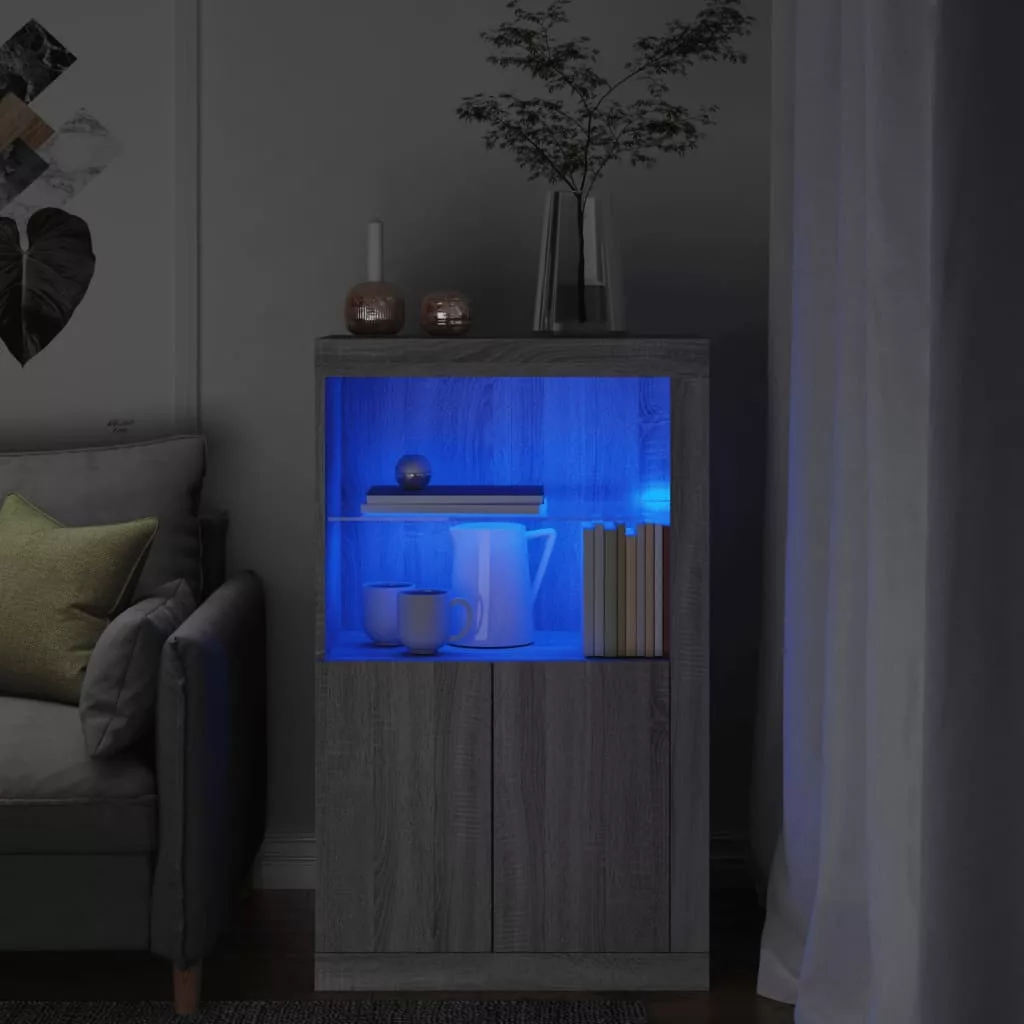 szürke sonoma színű szerelt fa tálalószekrény LED-világítással