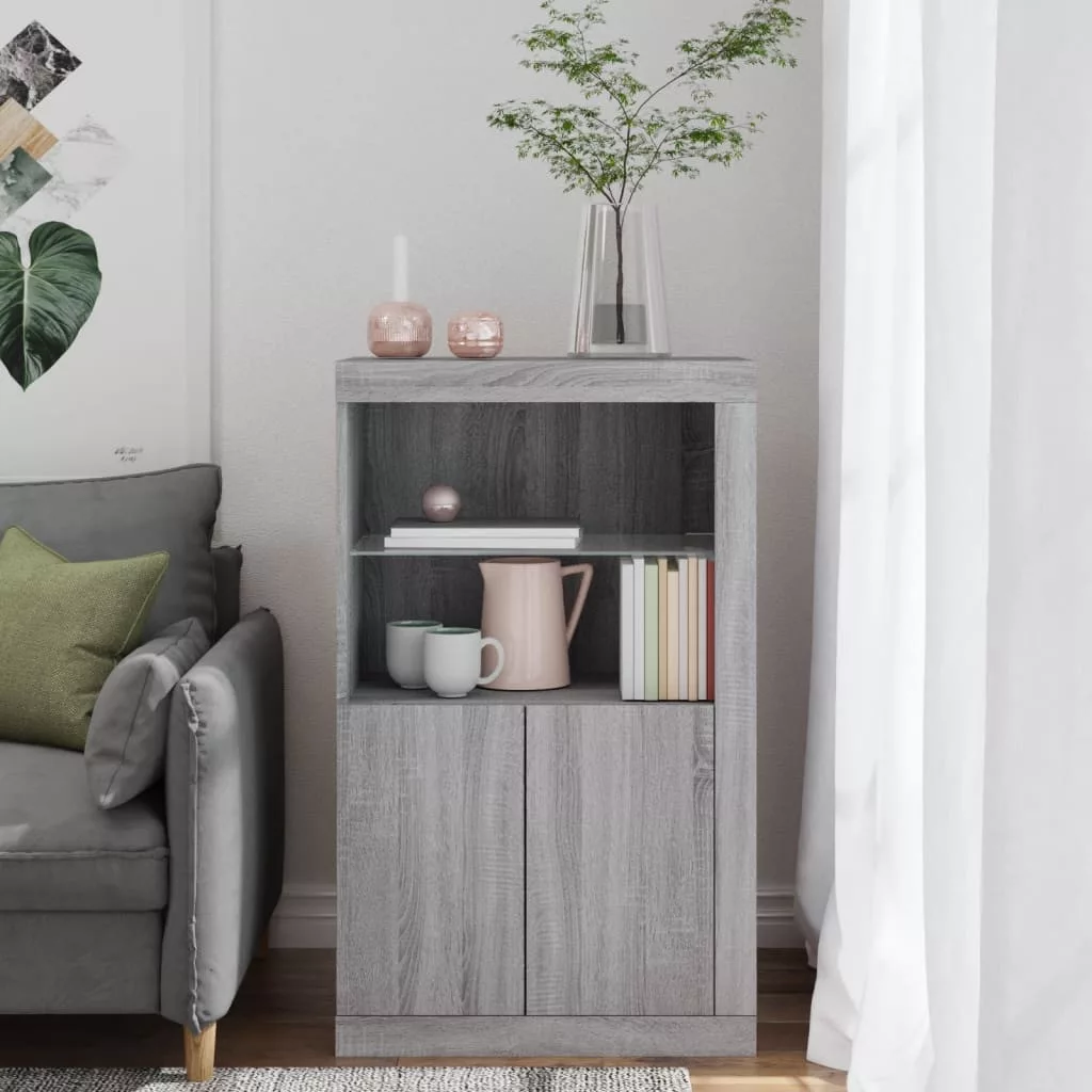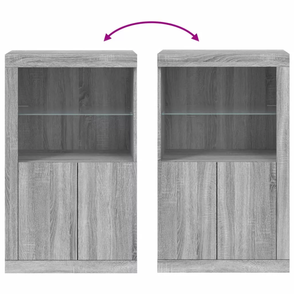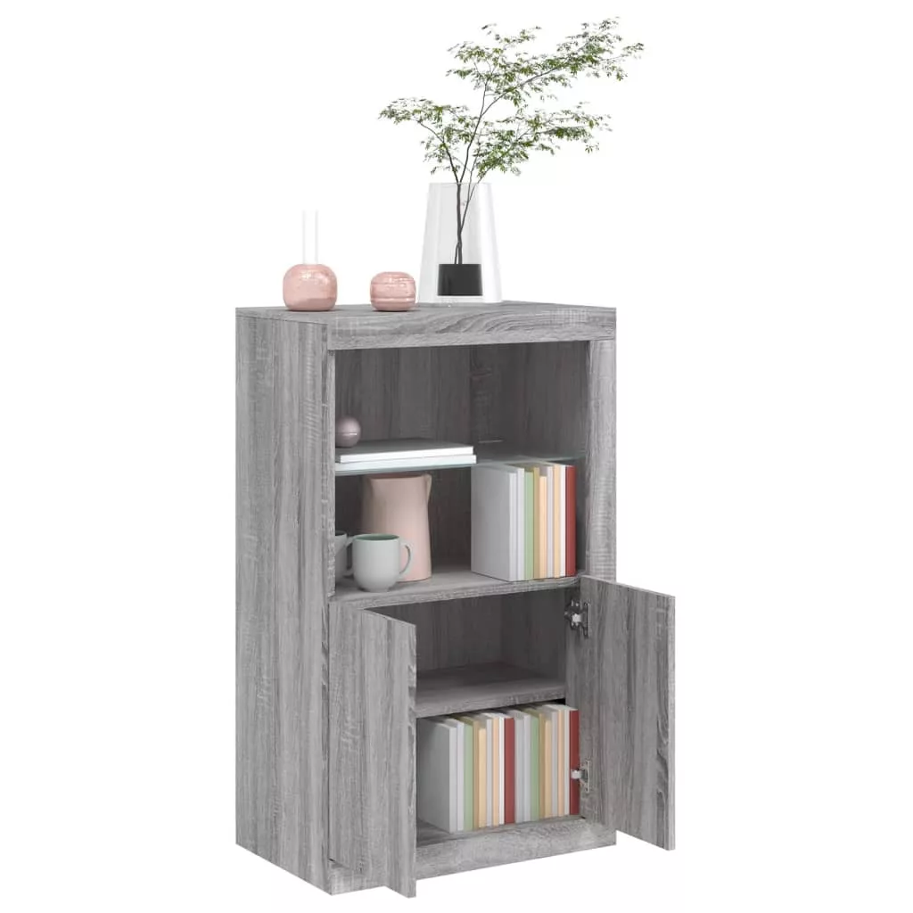szürke sonoma színű szerelt fa tálalószekrény LED-világítással