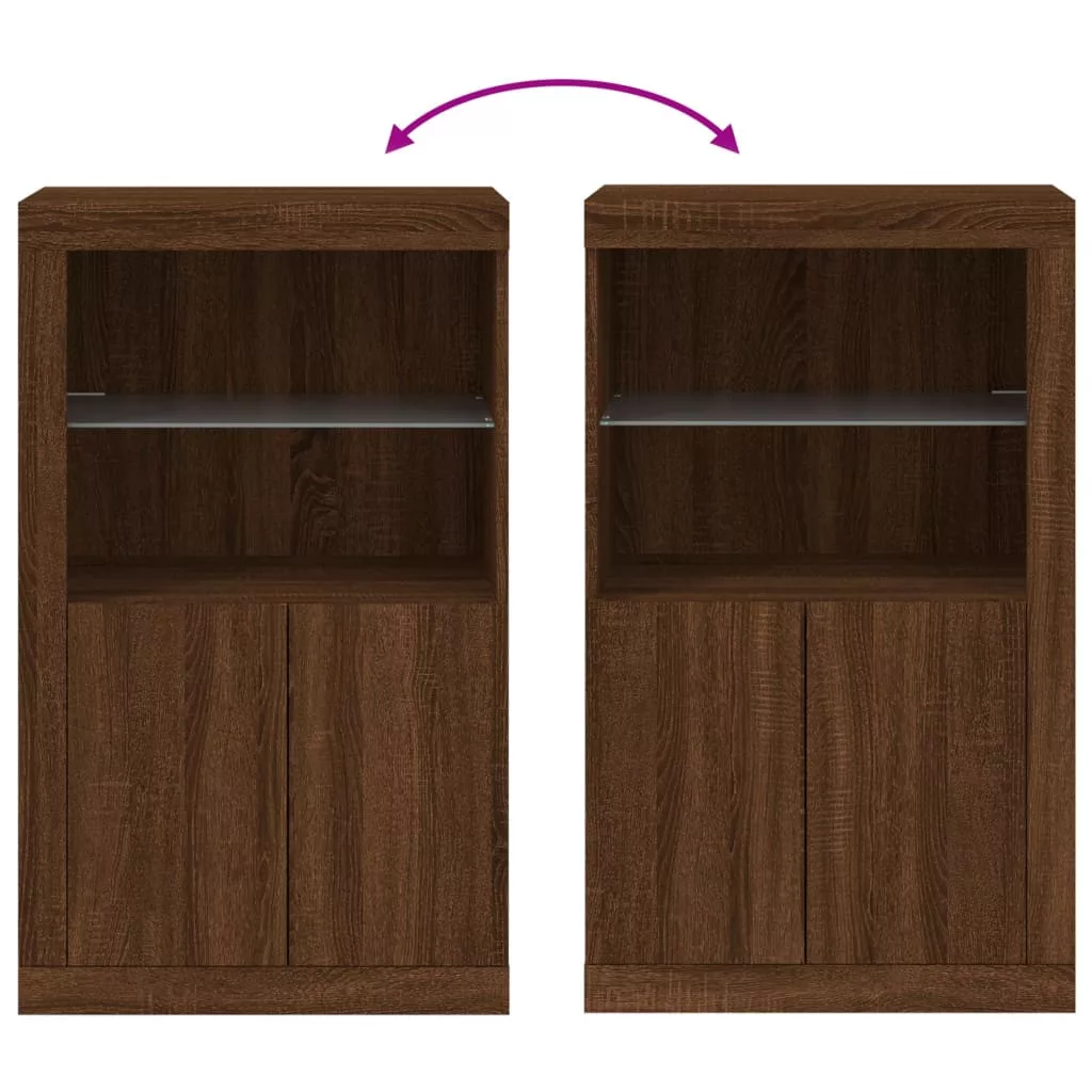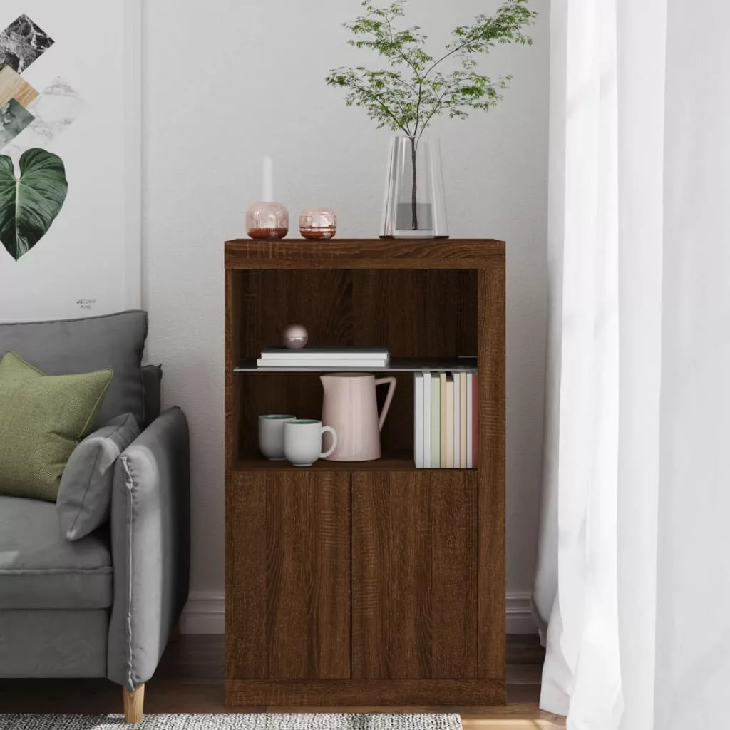 barna tölgy színű szerelt fa tálalószekrény LED-világítással