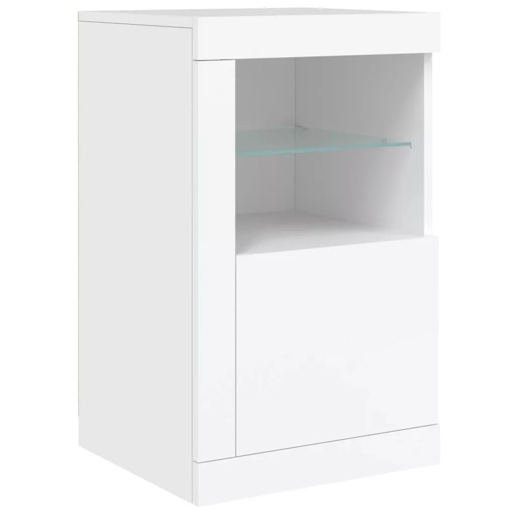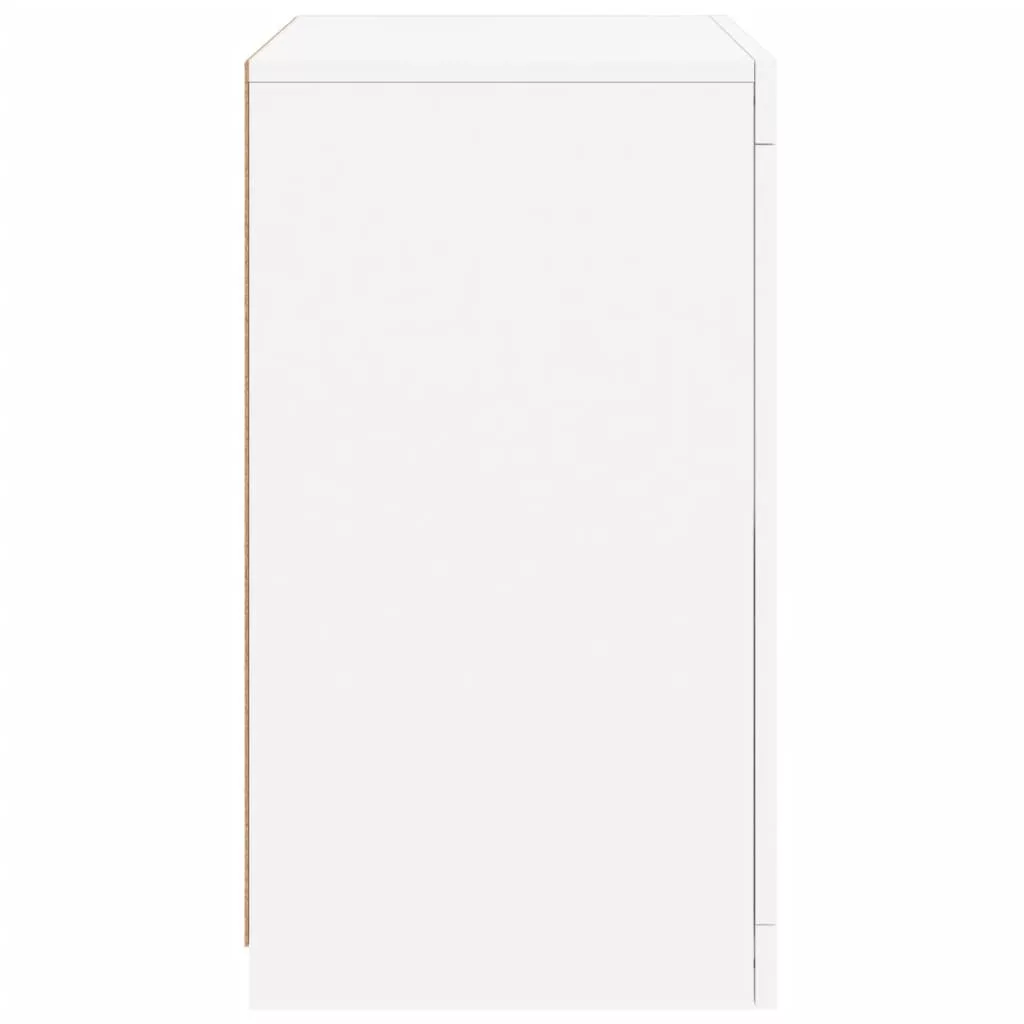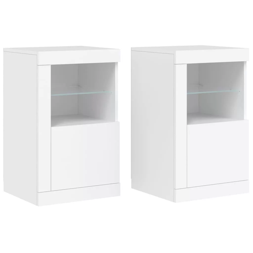 2 db fehér szerelt fa kisszekrény LED-fényekkel