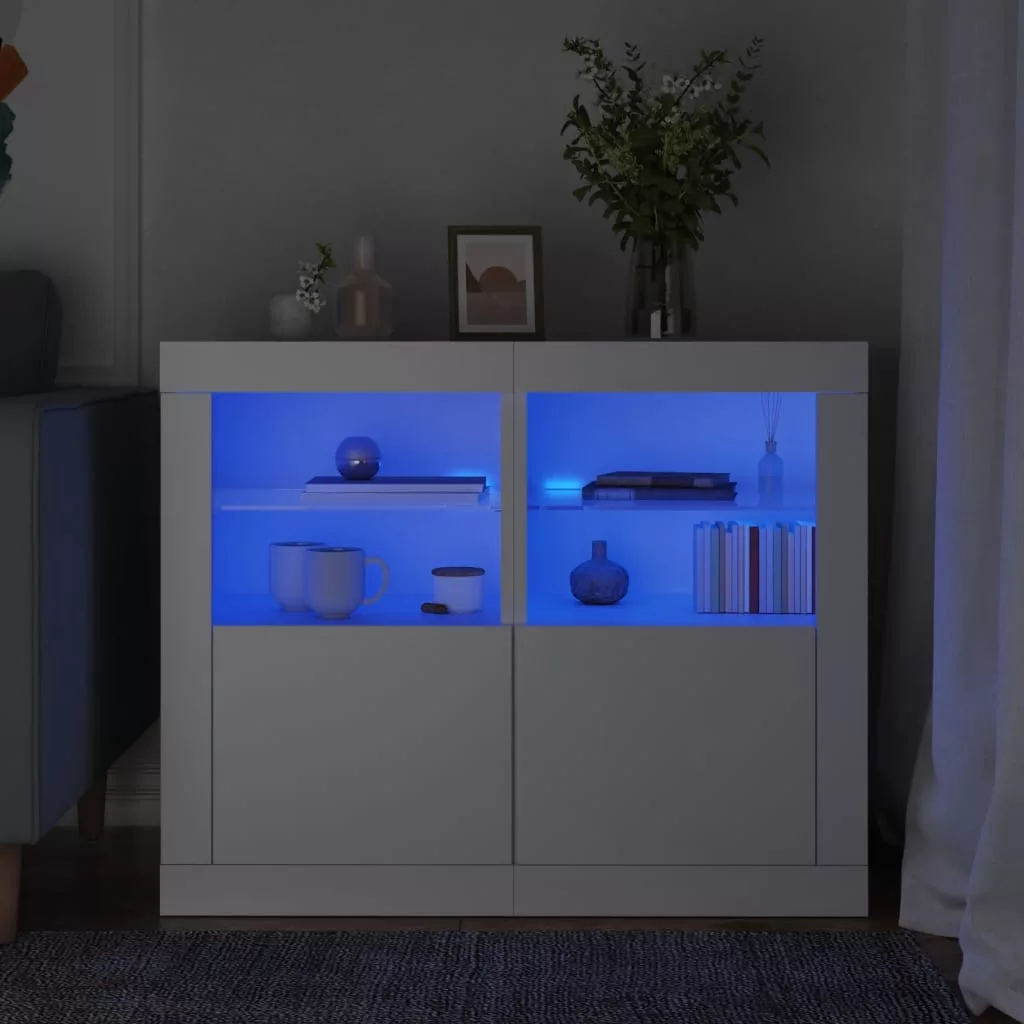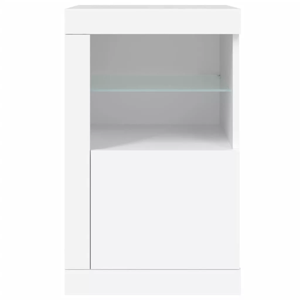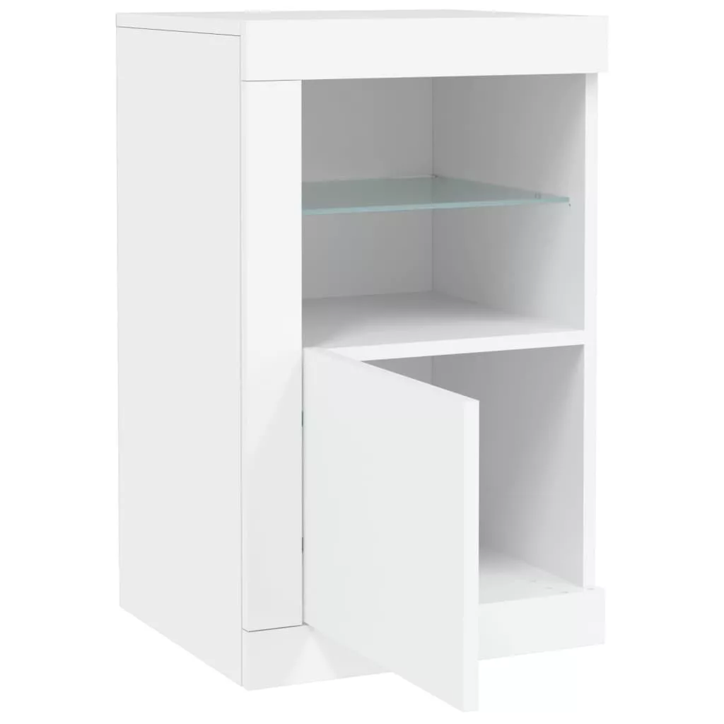 2 db fehér szerelt fa kisszekrény LED-fényekkel