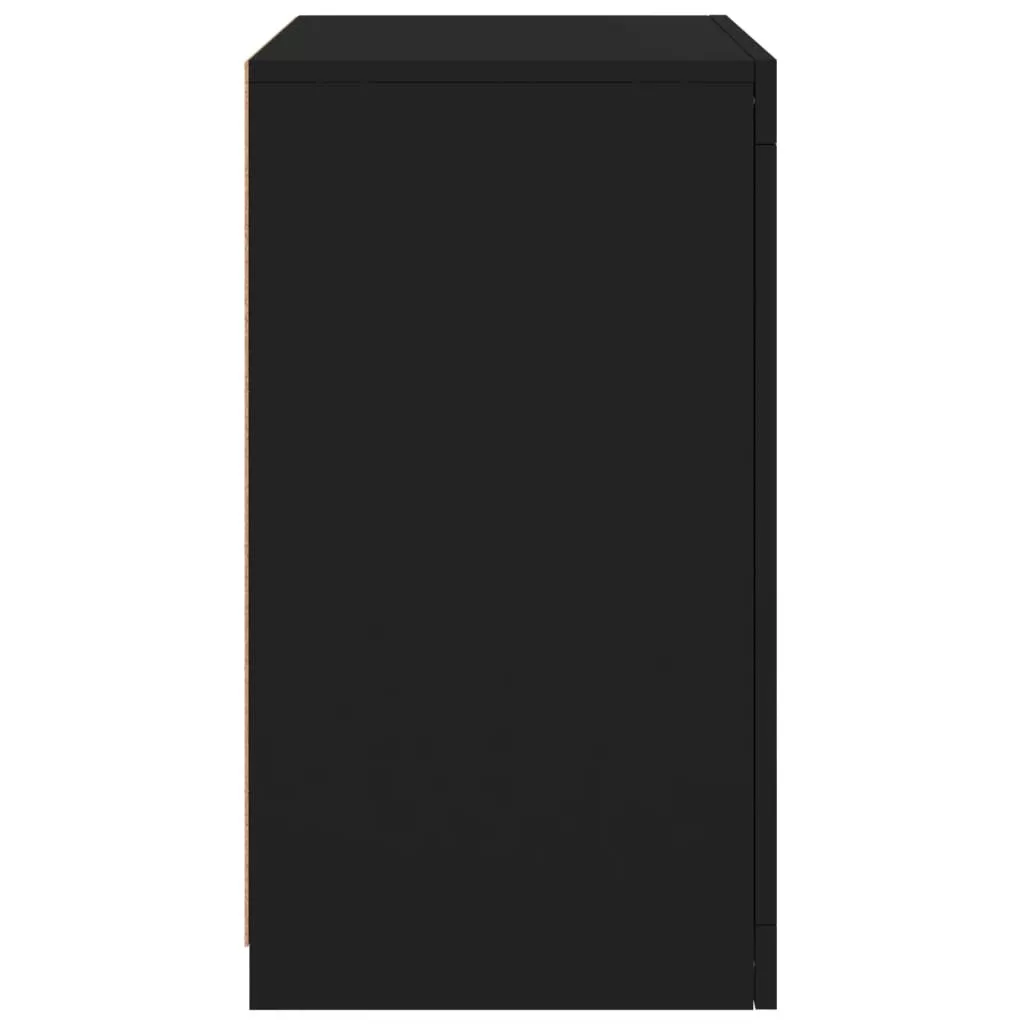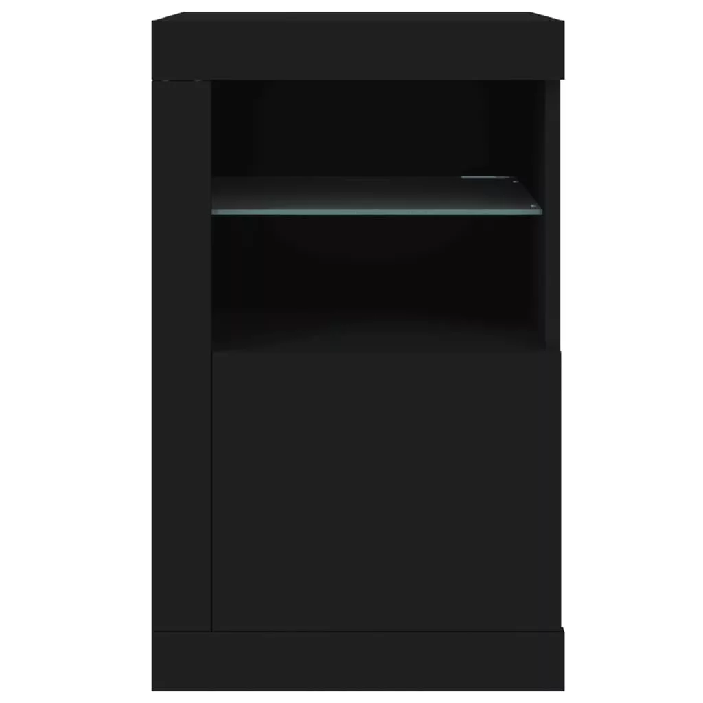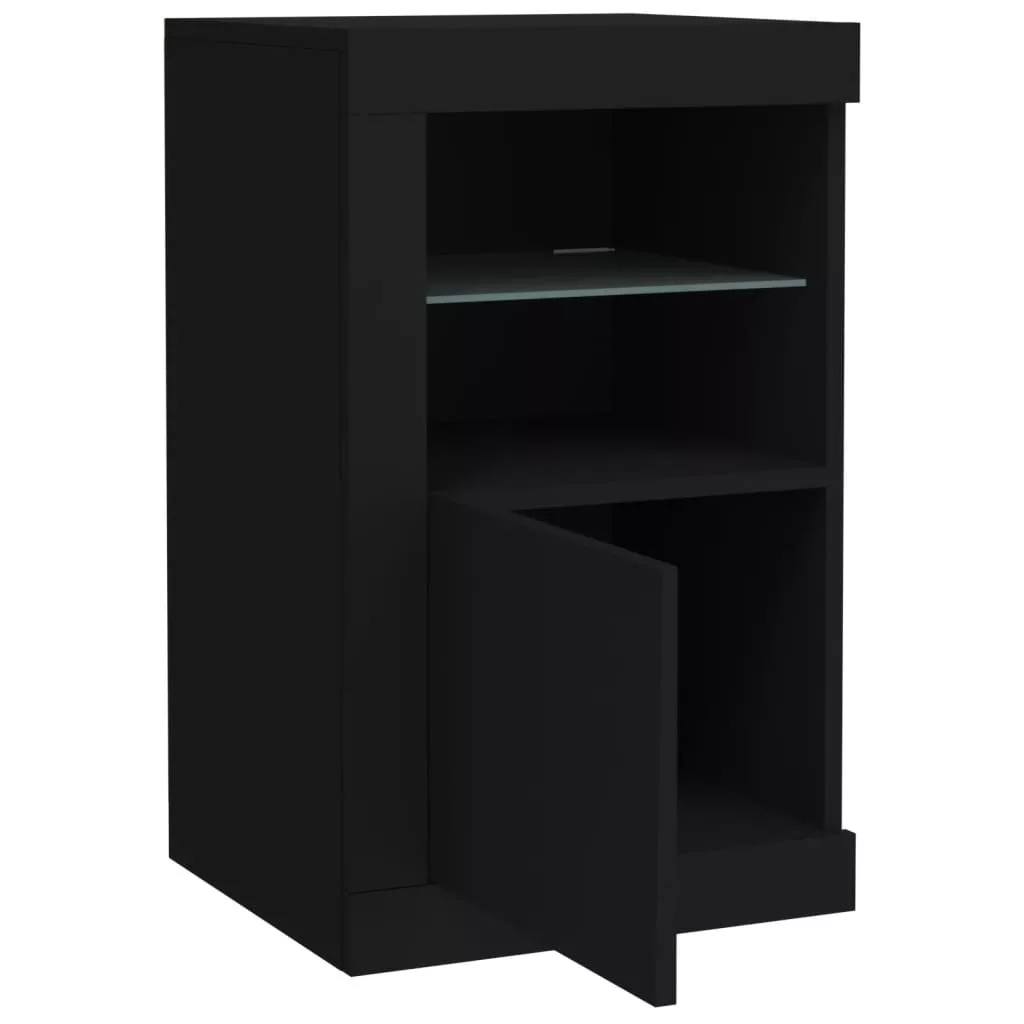 fekete szerelt fa tálalószekrény LED-világítással