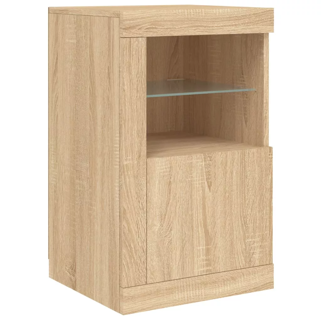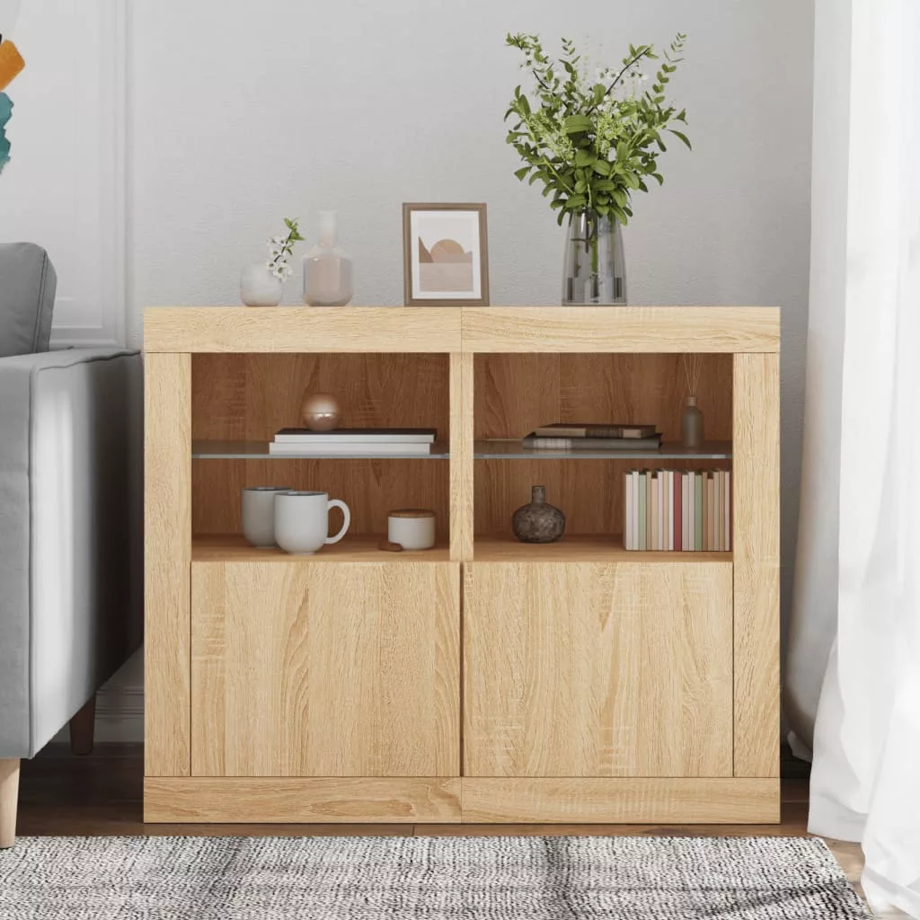 2 db sonoma tölgy színű szerelt fa műszekrény LED-fényekkel
