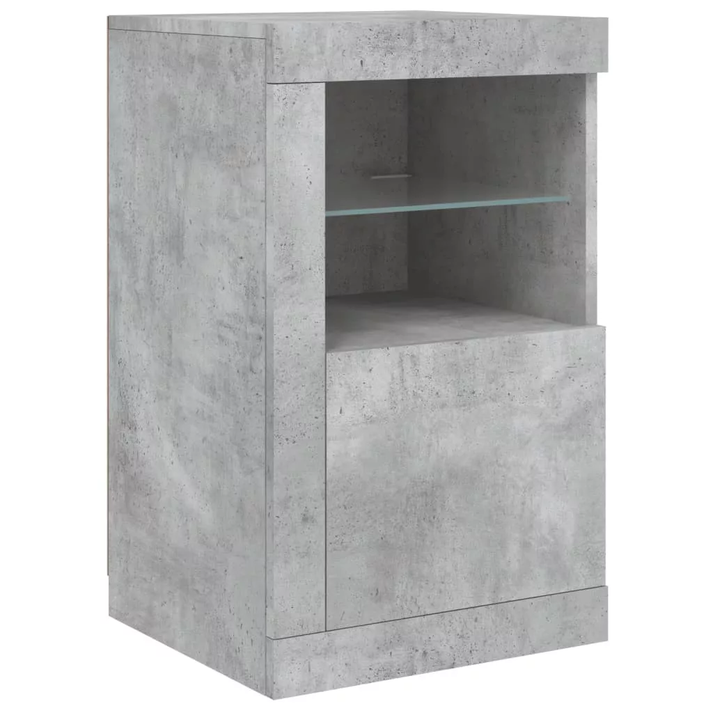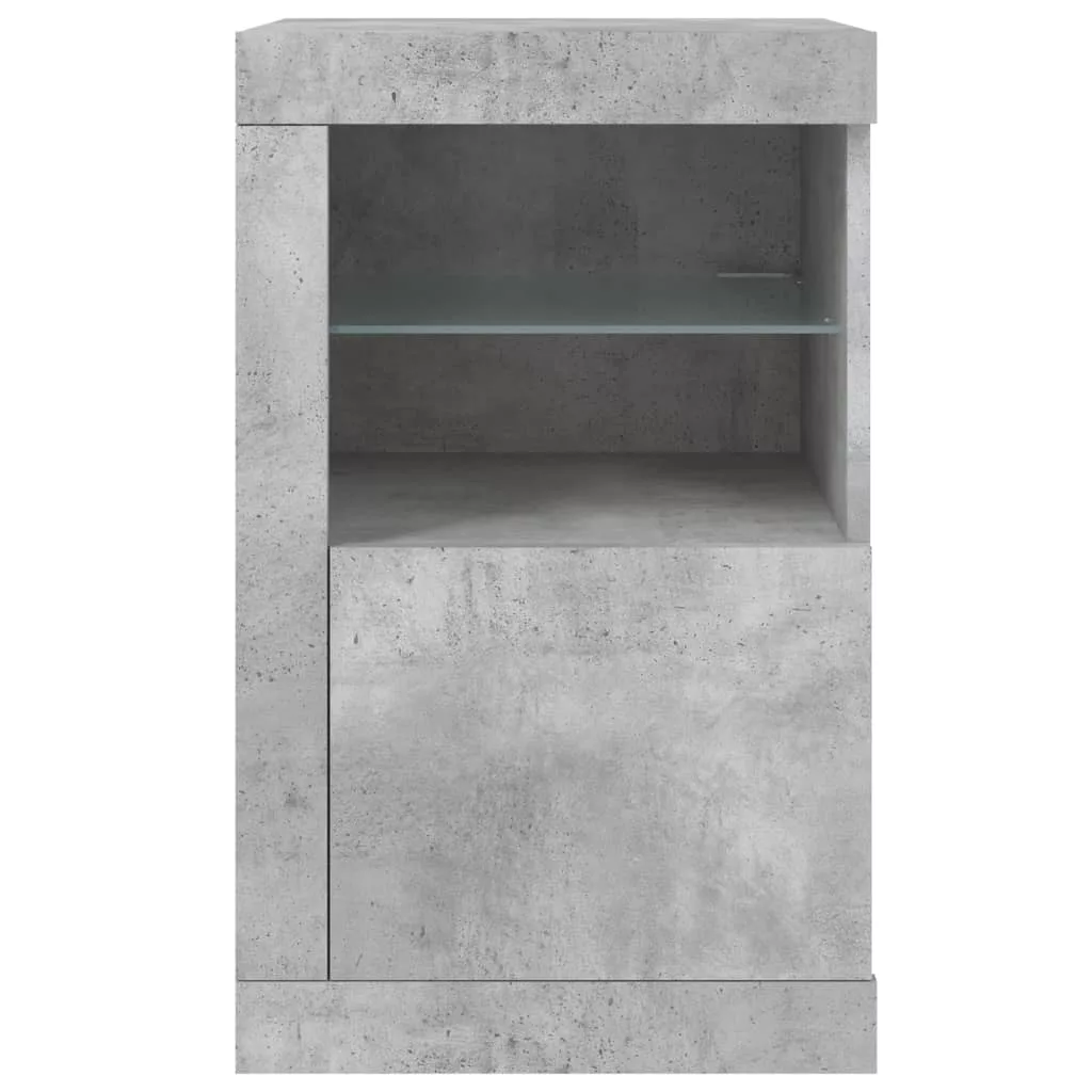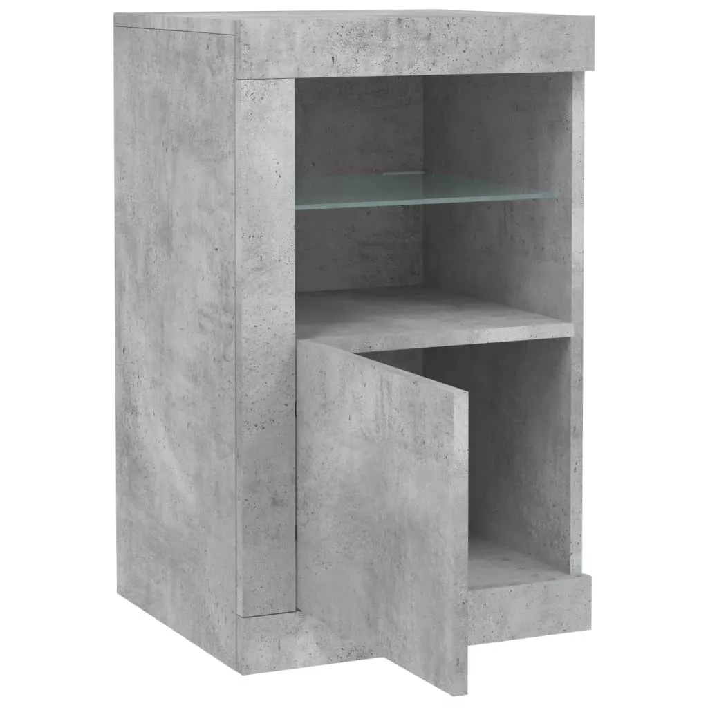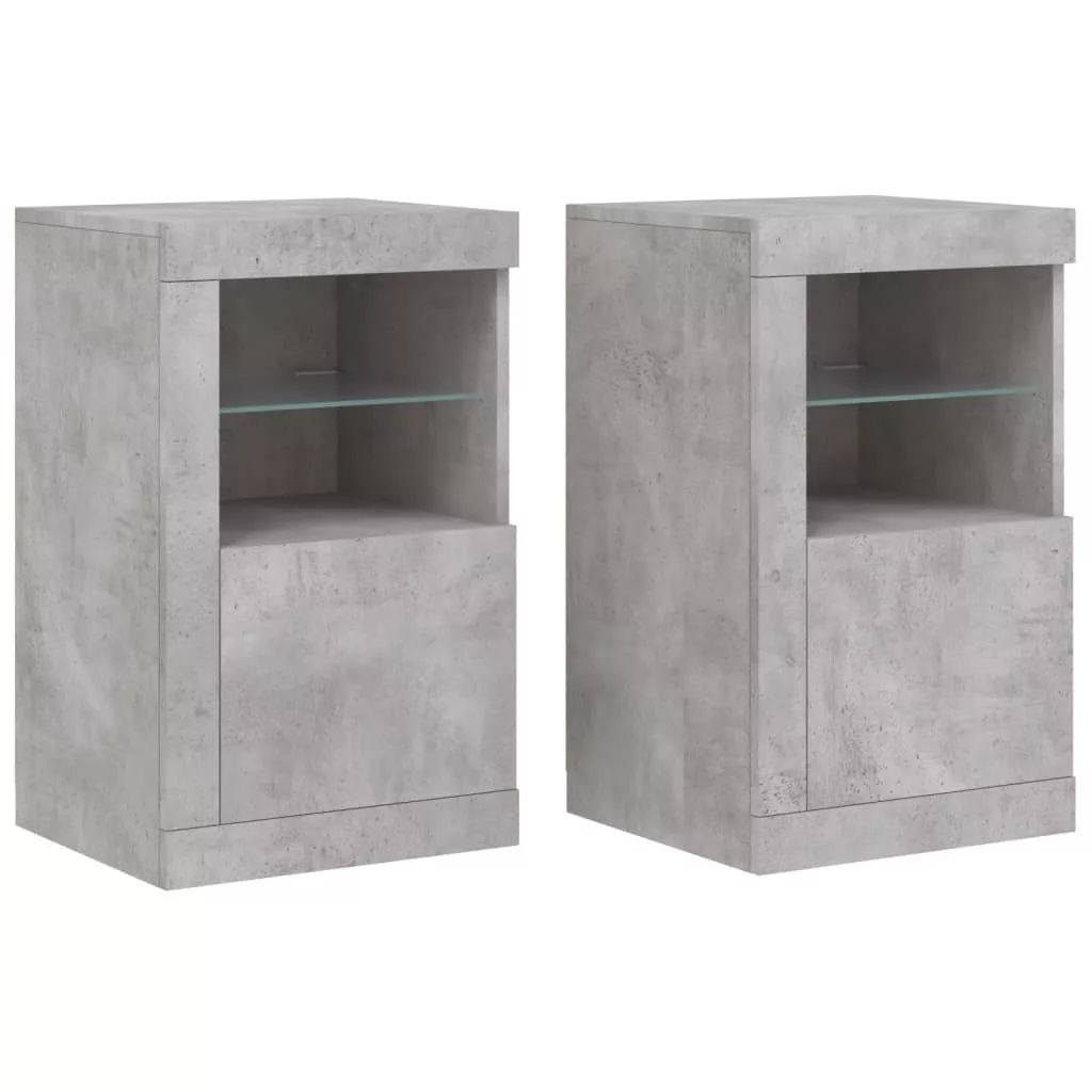 2 db betonszürke szerelt fa kisszekrény LED-del