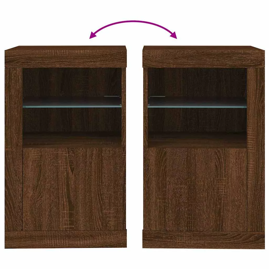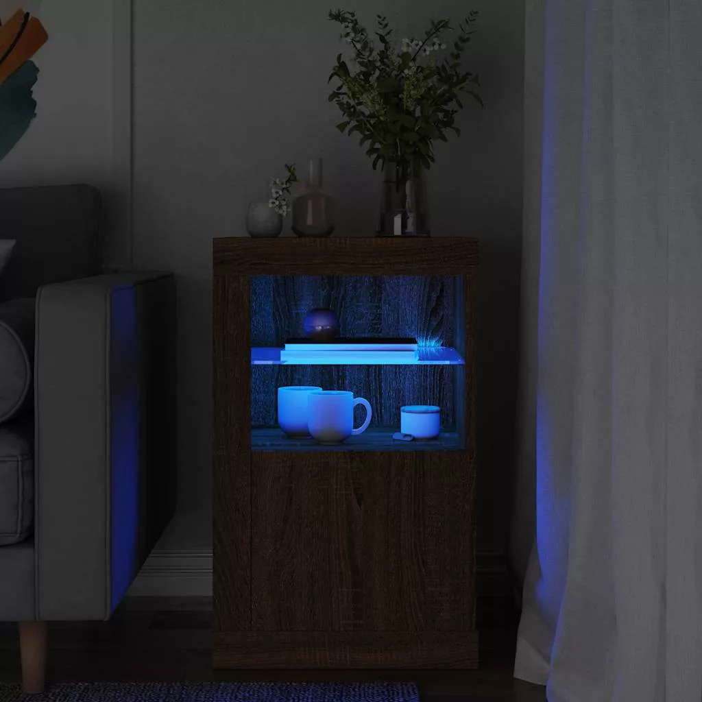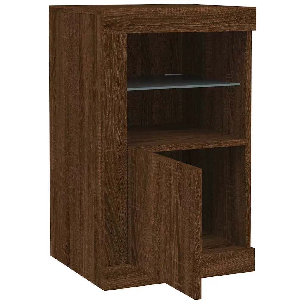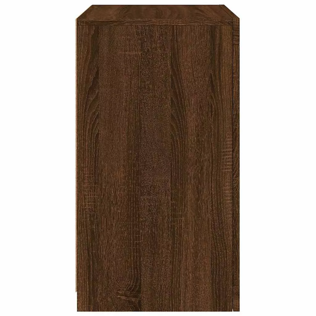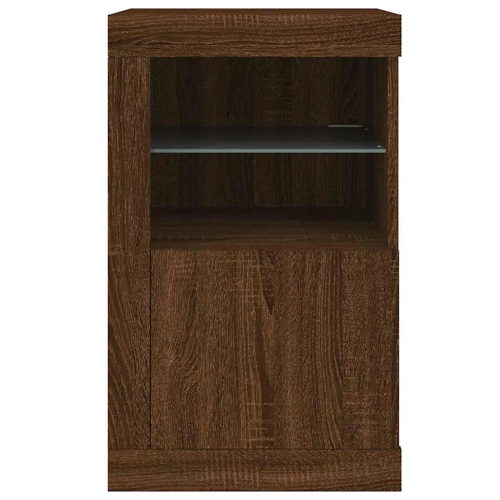 barna tölgy színű szerelt fa tálalószekrény LED-világítással