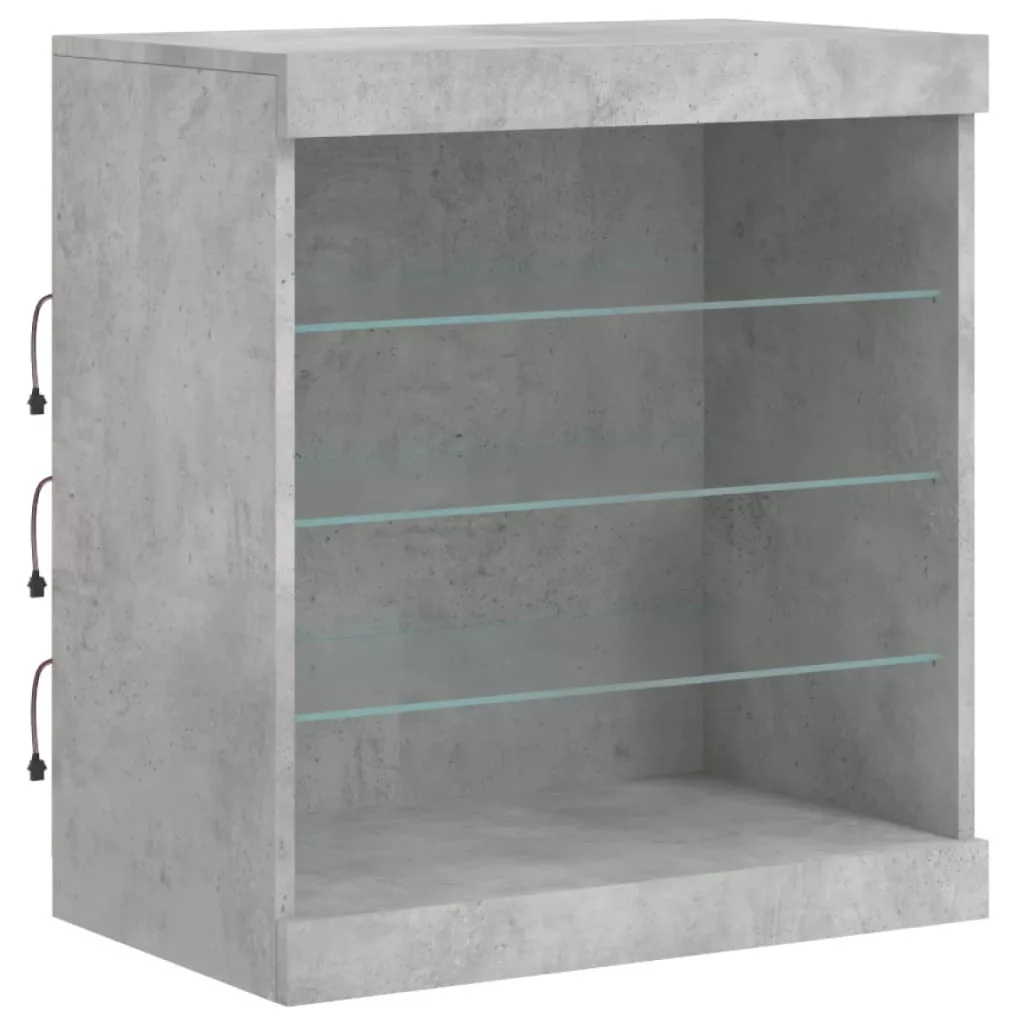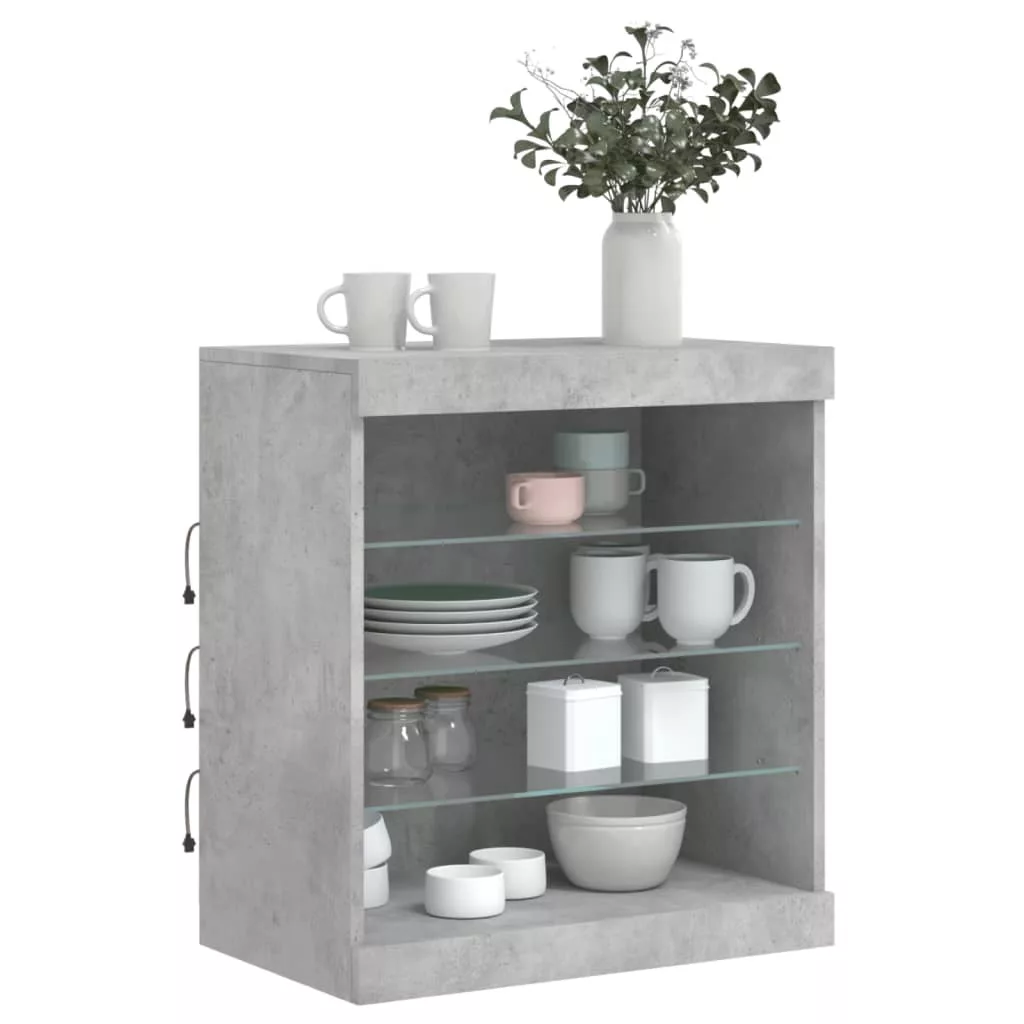 betonszürke tálalószekrény LED-világítással 60,5 x 37 x 67 cm