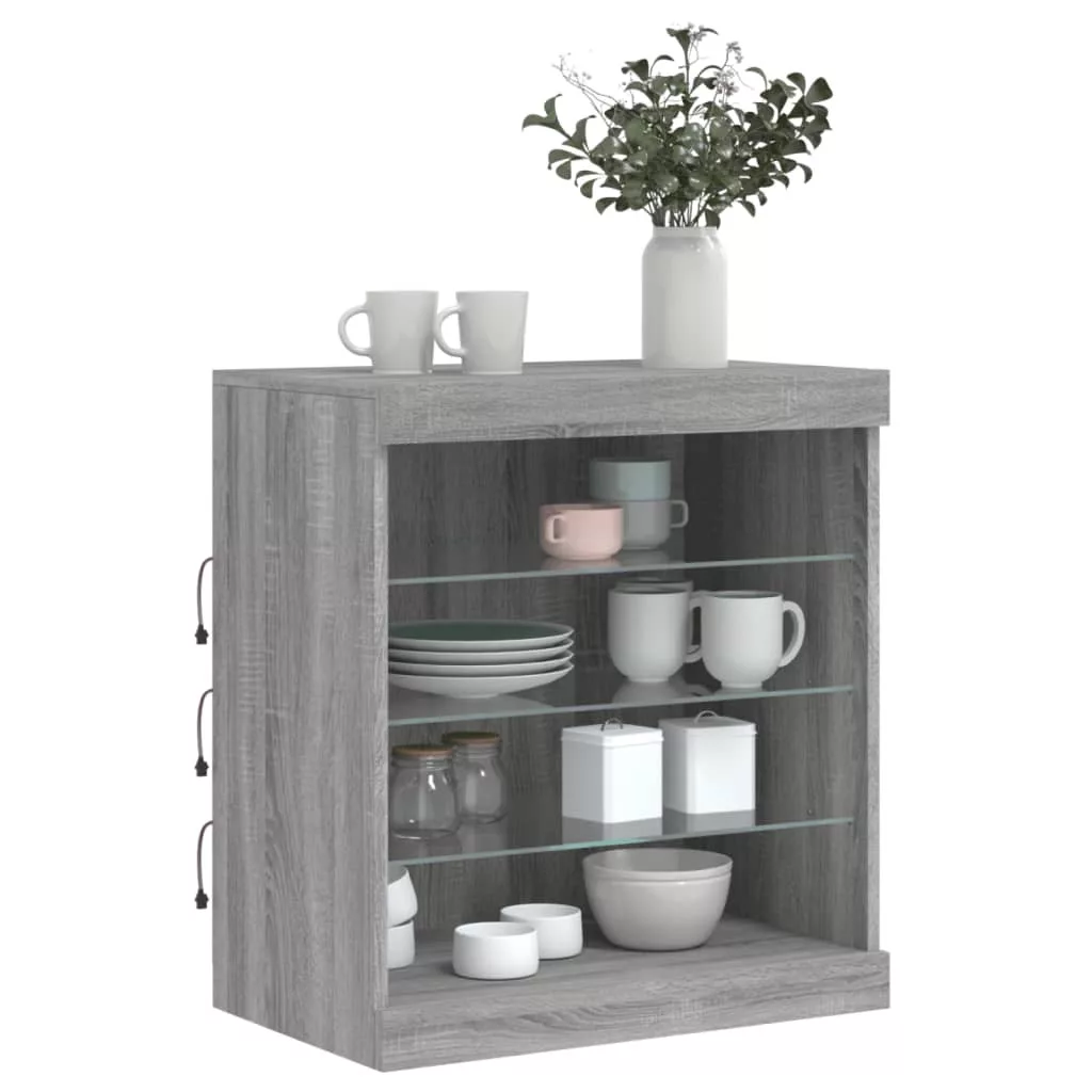 szürke sonoma színű tálalószekrény LED-ekkel 60,5 x 37 x 67 cm