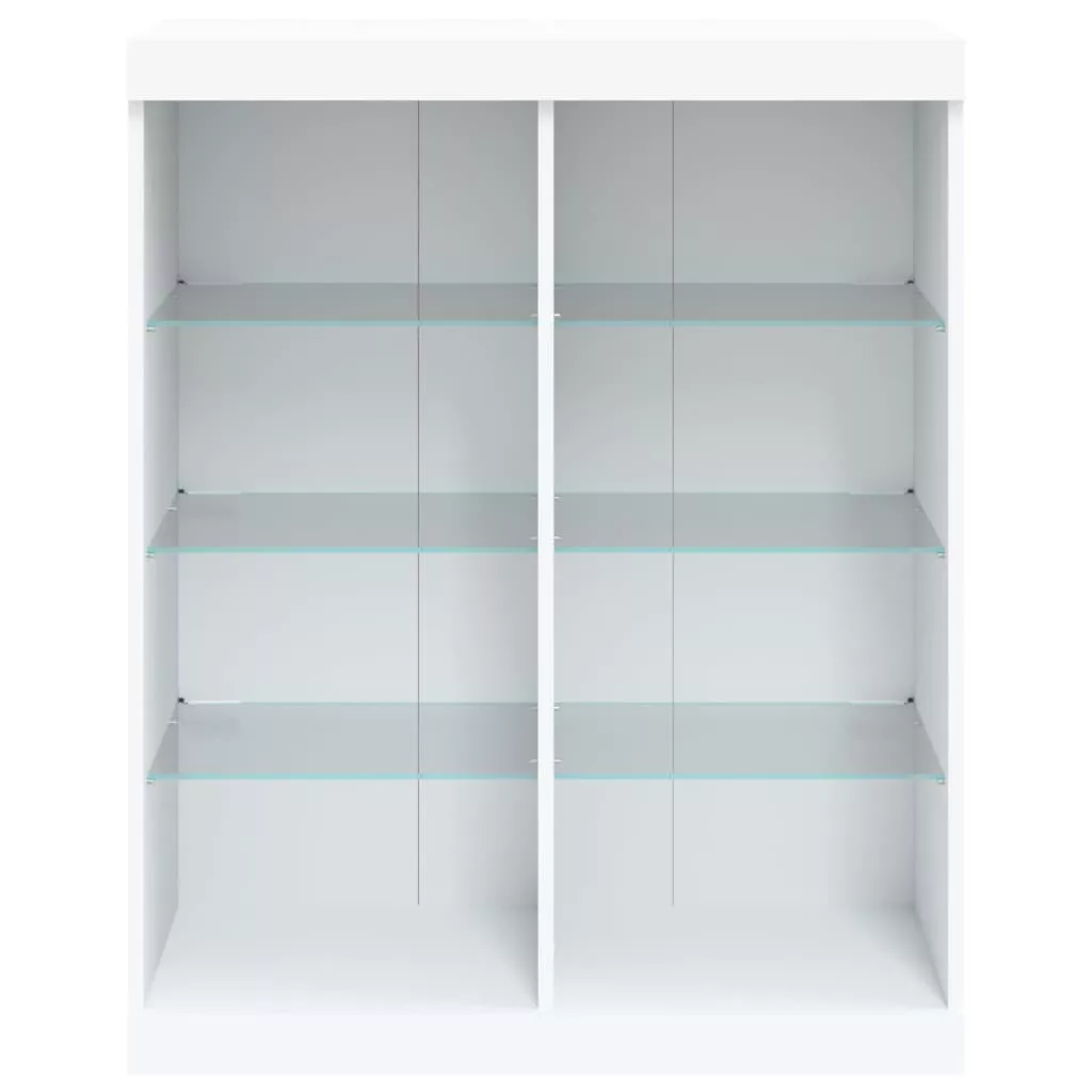 Díszítse fel szobáját ezzel a modern, LED-es lámpákkal felszerelt tálalószekrénnyel, mely könnyedén beleolvad otthona bármely stílusához. Tartós anyag: A szerelt fa kivételes minőségű, sima felületű, szilárd, stabil, és ellenáll a nedvességnek.Bőséges tárolóhely: A tálalószekrény rengeteg tárolóhelyet biztosít folyóiratai, könyvei, távirányítói és egyéb apró tárgyai rendezetten és könnyen elérhető helyen való tartásához.Bemutatófunkció: A tálalószekrény felső lapja ideálisak dísztárgyak, képkeretek vagy cserepes növények elhelyezésére.Szabályozható LED-lámpák: Ez a tárolószekrény RGB LED-világítással lett ellátva, amely különféle menükkel rendelkezik a fény színének változtatására, így színnel és szépséggel ruházza fel otthonát. Figyelem:A felborulás elkerülése érdekében ezt a terméket a mellékelt fali rögzítőeszközzel kell használni. Jó tudni:A termék USB-csatlakozóval rendelkezik, amelyhez hitelesített, 5 V-os USB áramforrás szükséges (nem alaptartozék). Ne használja ezt az elemet, ha valamelyik alkatrésze eltört, elszakadt vagy hiányzik. Ez a termék DC 5V-ról működik, de a tanúsított 5V-os USB-tápforrást nem tartalmazza. A magasabb feszültség túlmelegedést okozhat, ami a készülék károsodását, valamint a túlmelegedés és a tűz esetleges kockázatát okozhatja.