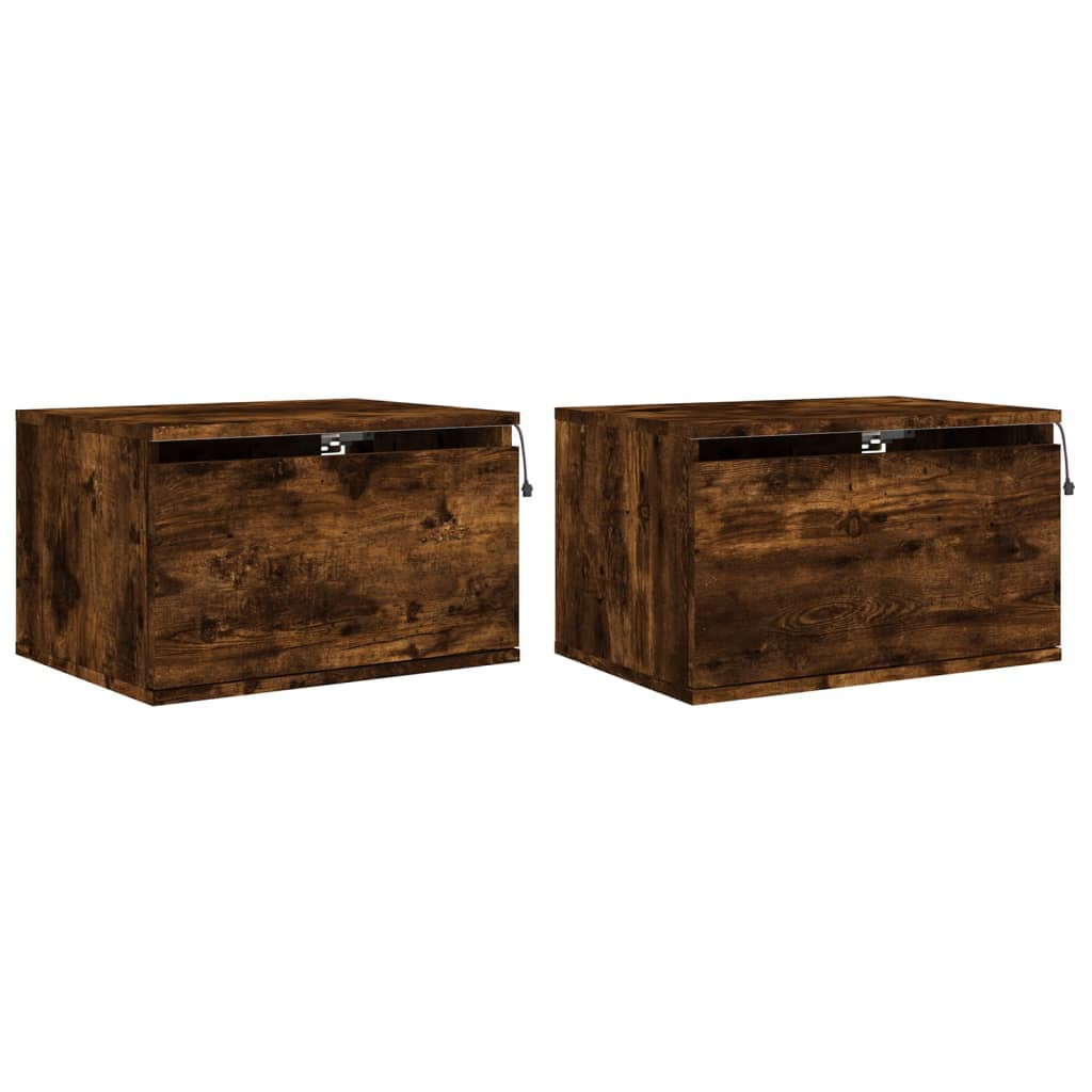 2 db fali füstös sonoma tölgy éjjeli szekrény LED fényekkel