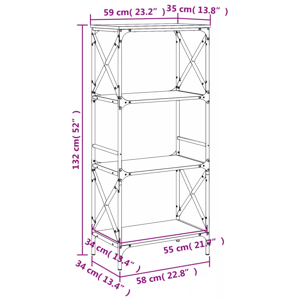 4 szintes fekete szerelt fa könyvespolc 59 x 35 x 132 cm