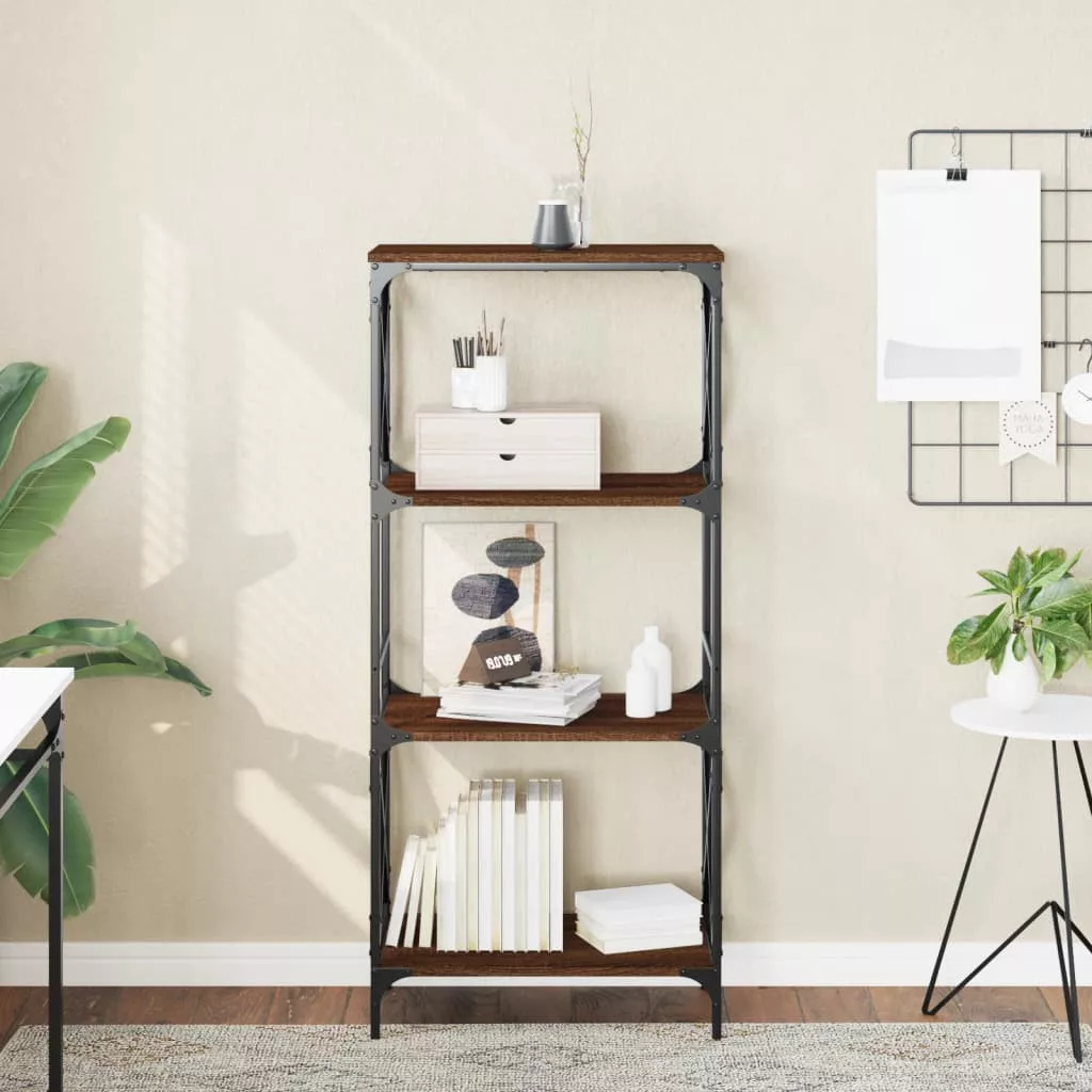 4 szintes barna tölgy színű szerelt fa könyvespolc 59x35x132 cm
