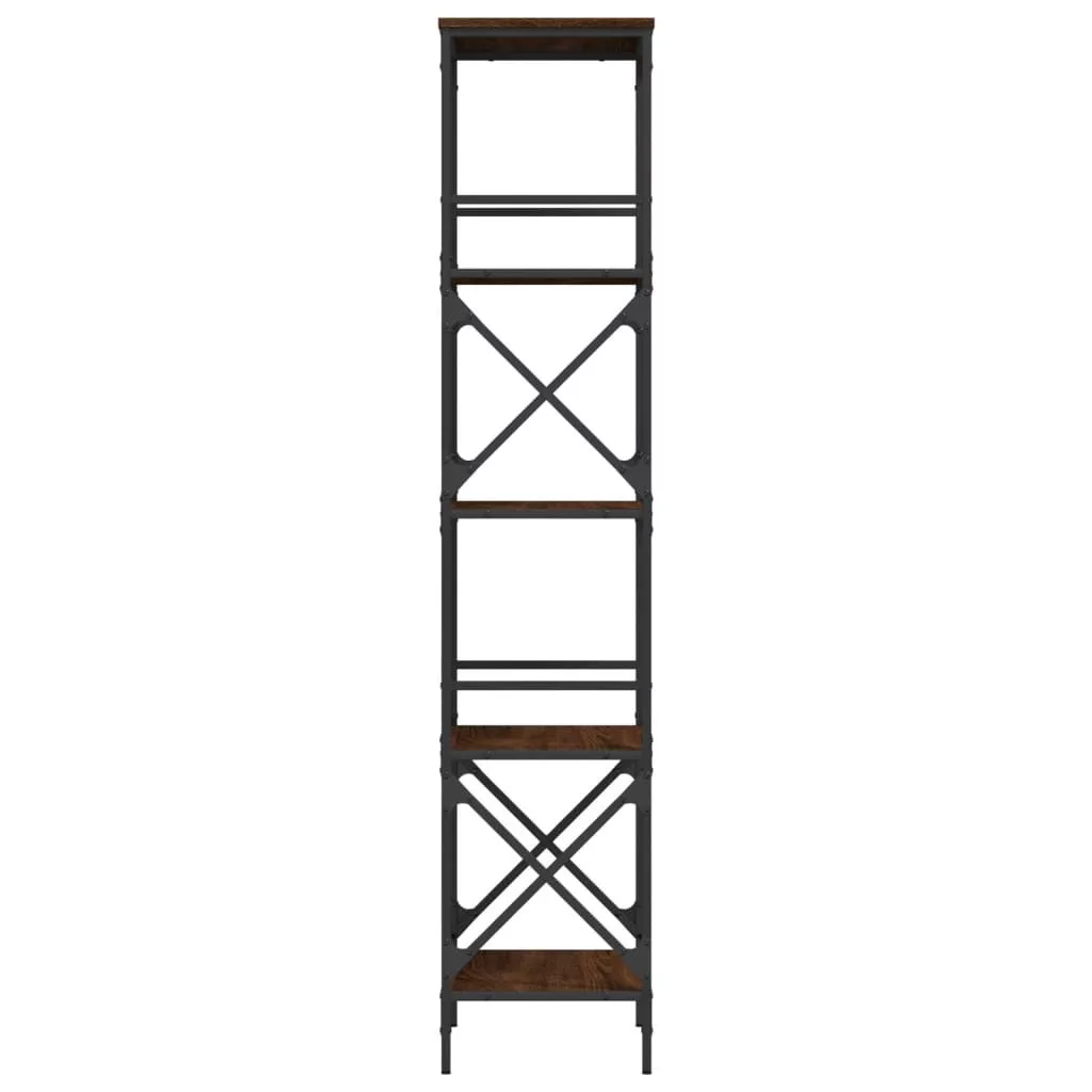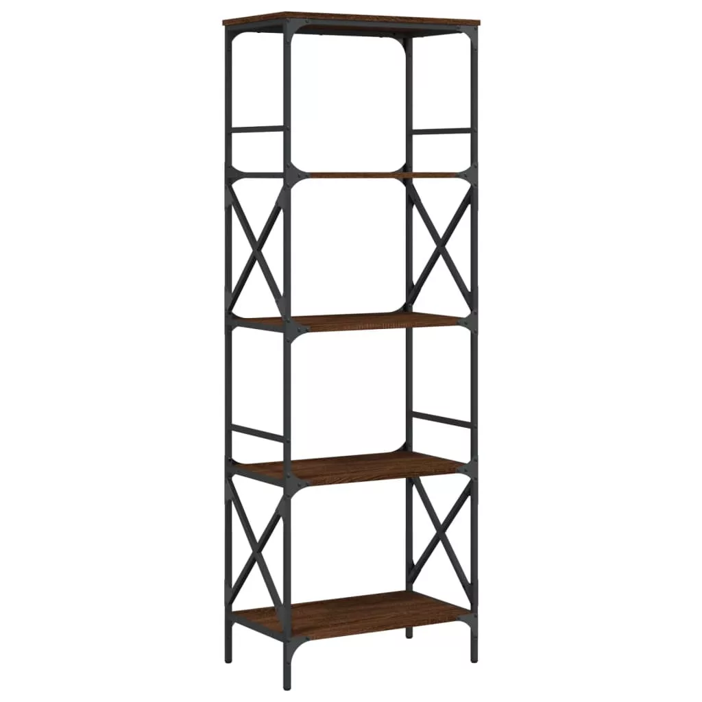 5 szintes barna tölgy színű szerelt fa könyvespolc 56x35x171 cm