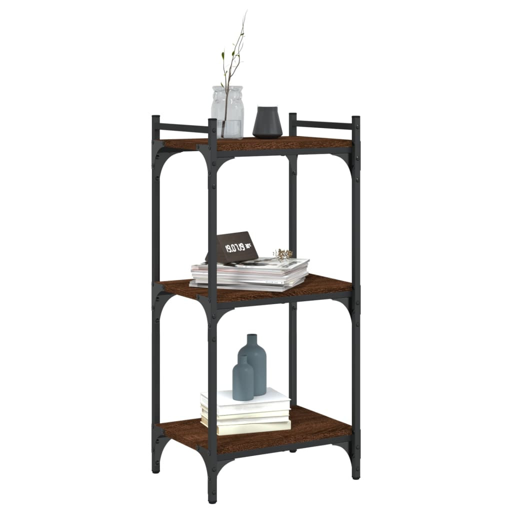 3 szintes barna tölgy színű szerelt fa könyvespolc 40x30x86 cm