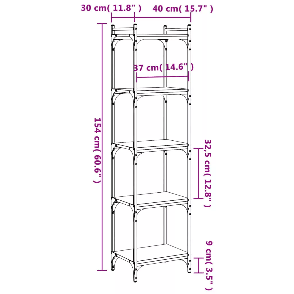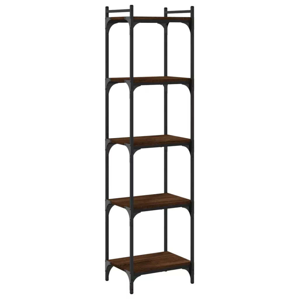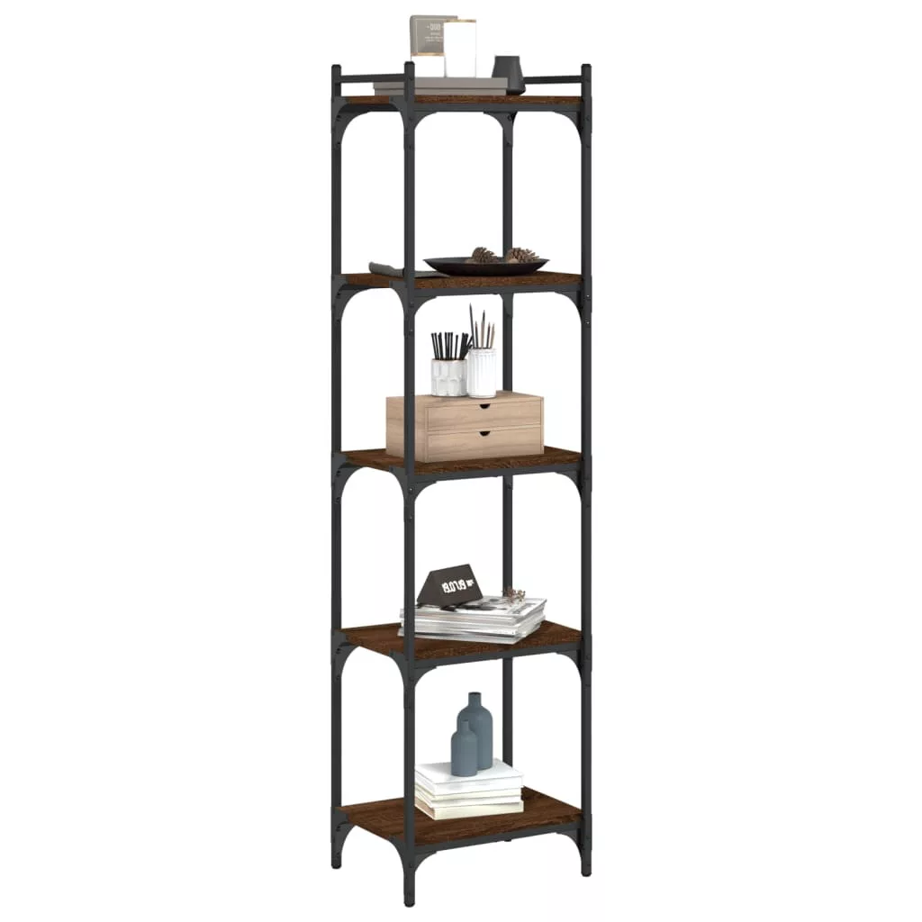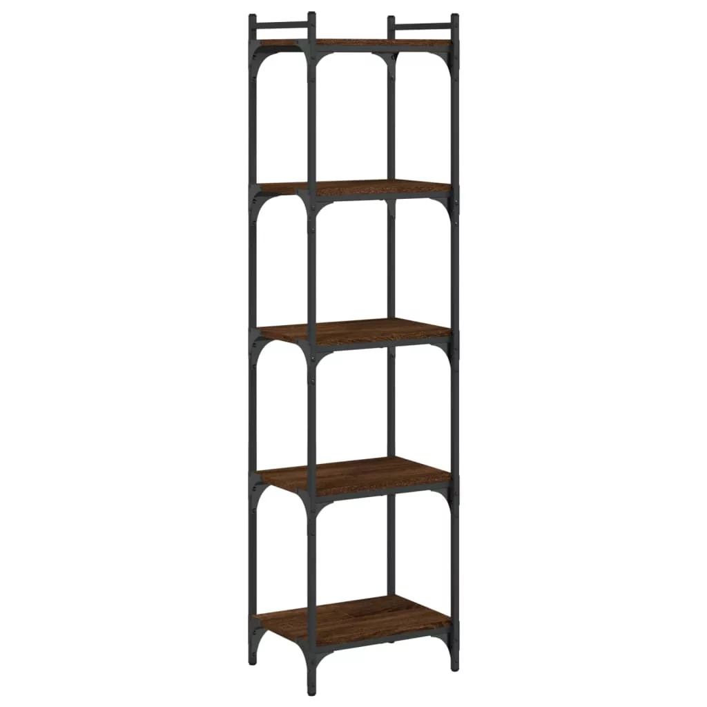 5 szintes barna tölgy színű szerelt fa könyvespolc 40x30x154 cm