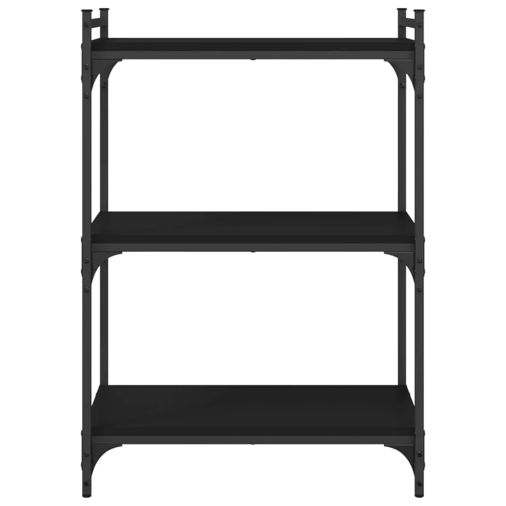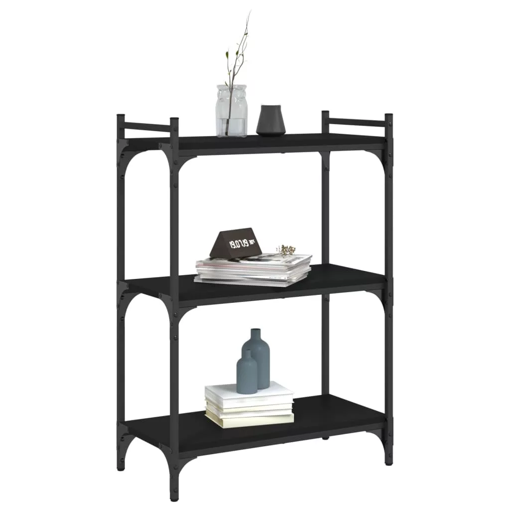 3 szintes fekete szerelt fa könyvespolc 60x30x86 cm