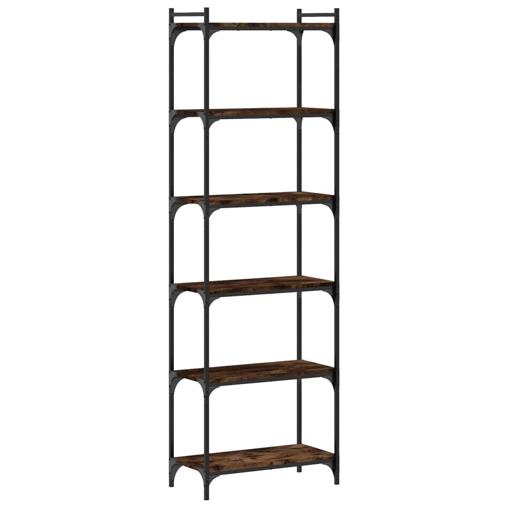 6 szintes füstös tölgy szerelt fa könyvespolc 60 x 30 x 188 cm