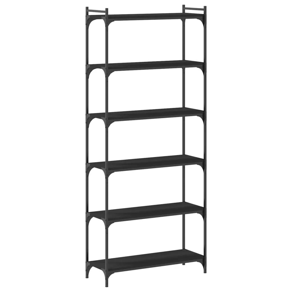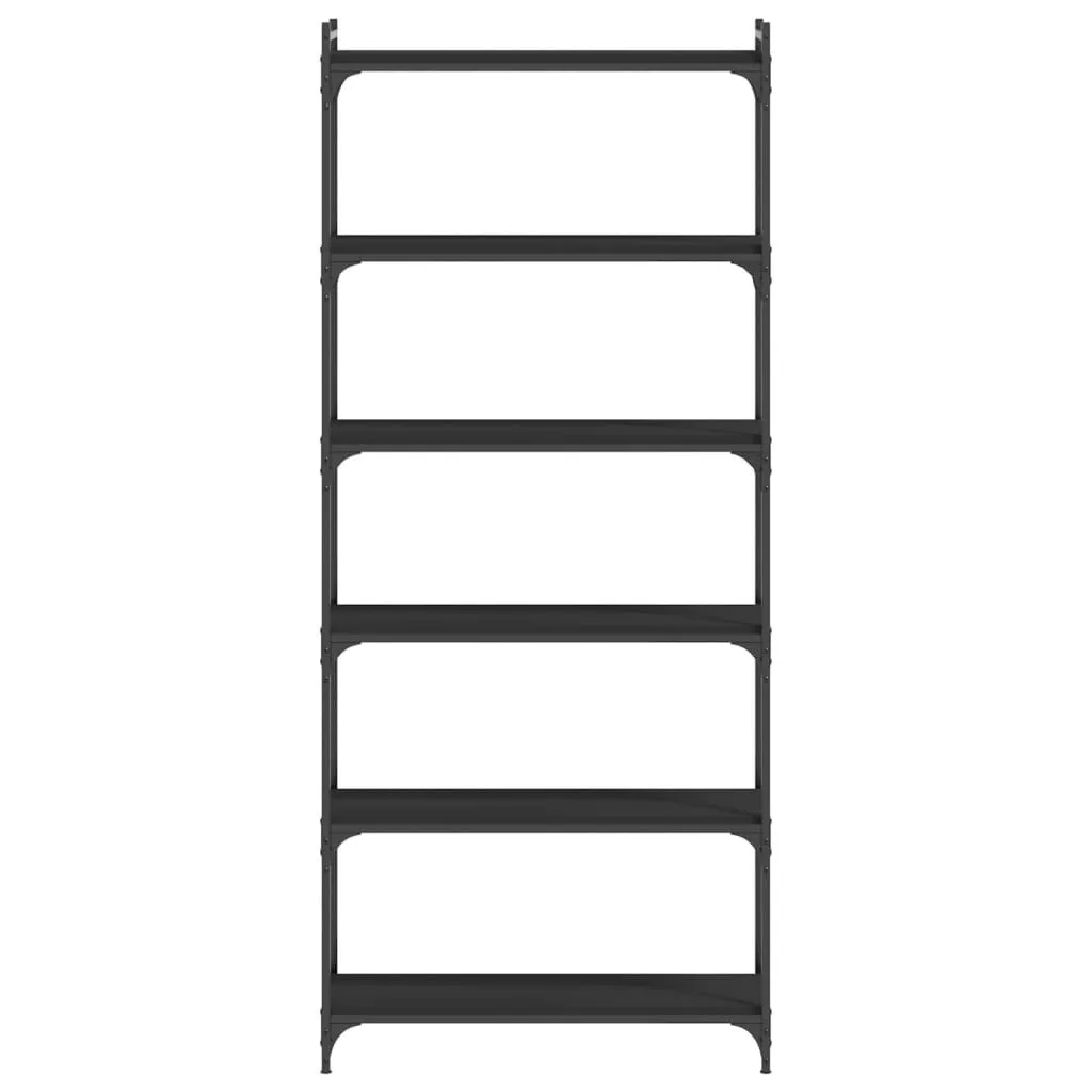 6 szintes fekete szerelt fa könyvespolc 80 x 30 x 188 cm