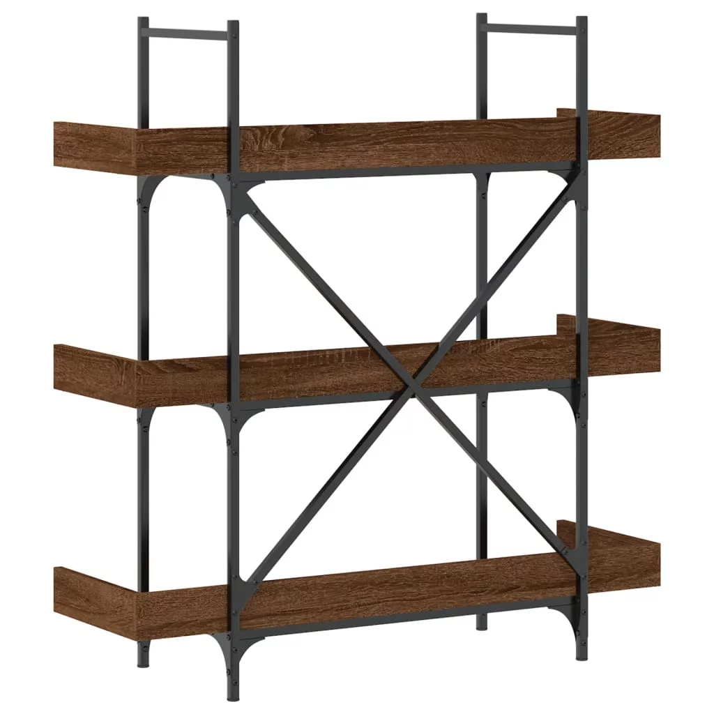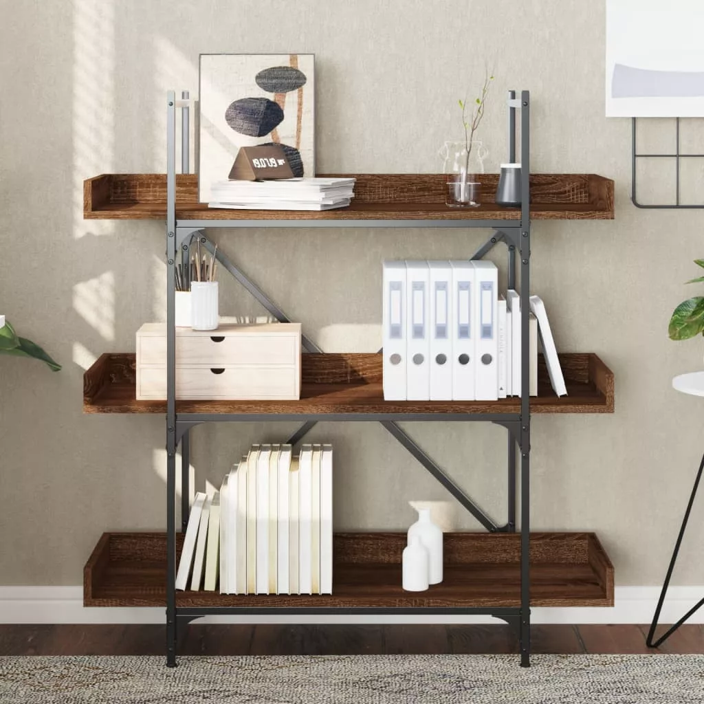 3-szintes barna tölgy szerelt fa könyvespolc 100x33x108,5 cm