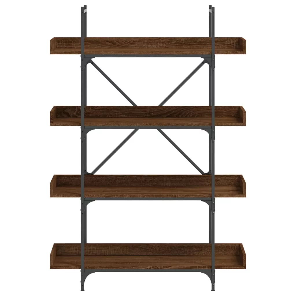 4-szintes barna tölgy szerelt fa könyvespolc 100x33x145,5 cm