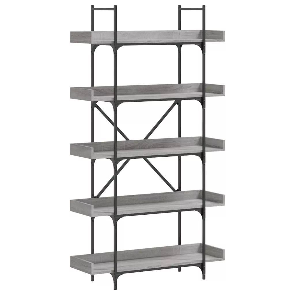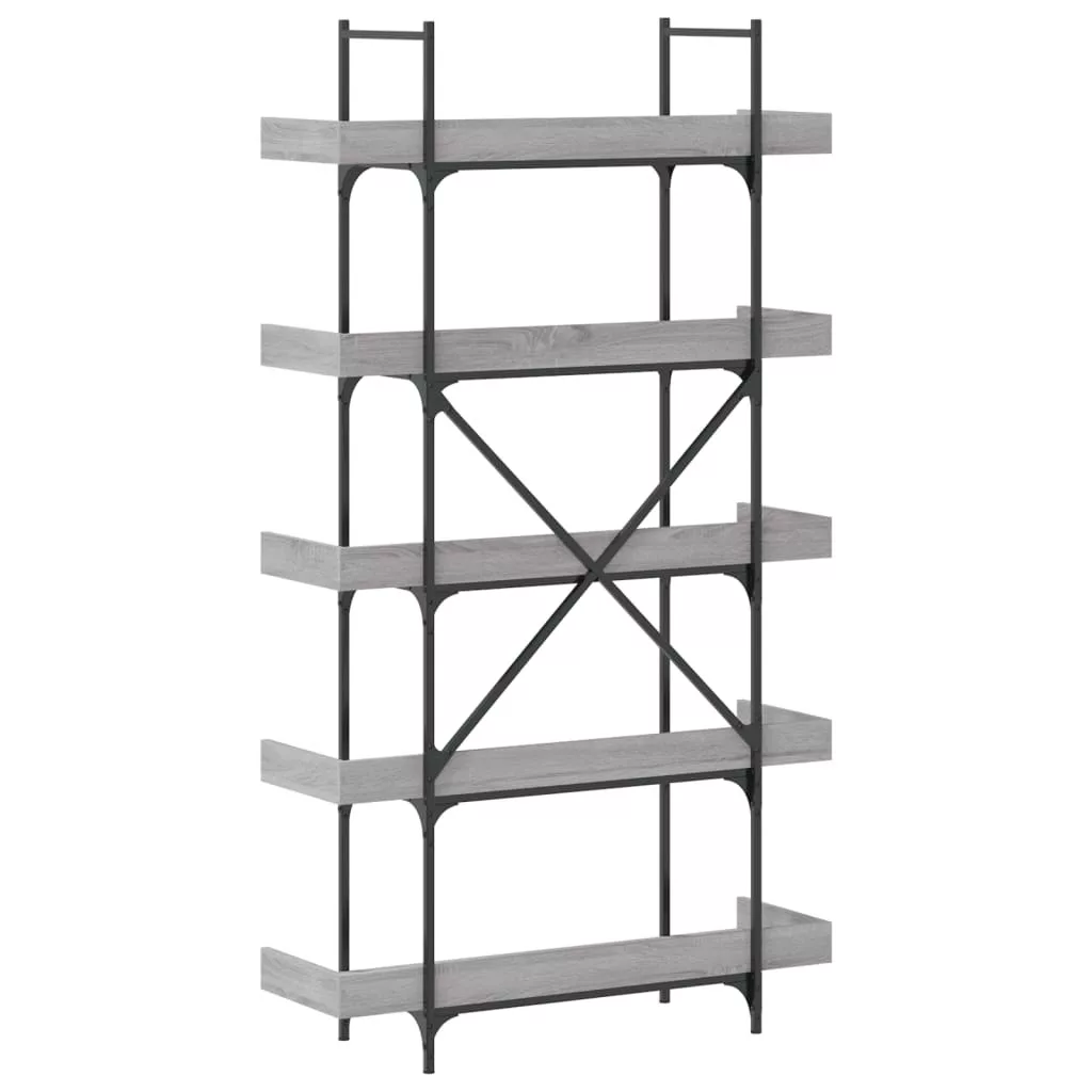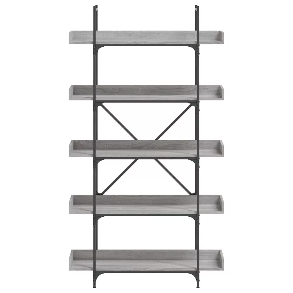 5-szintes szürke sonoma szerelt fa könyvespolc 100x33x180,5 cm