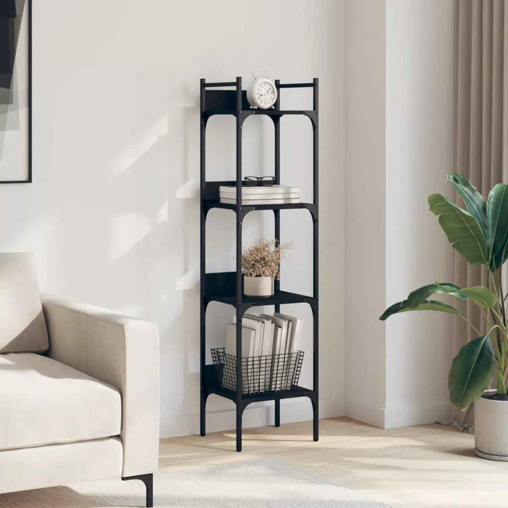 4 szintes fekete szerelt fa könyvespolc 35 x 30 x 138,5 cm