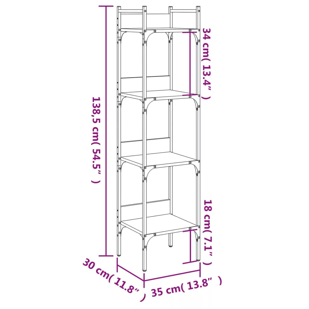 5 szintes füstös tölgy szerelt fa könyvespolc 35x30x138,5 cm