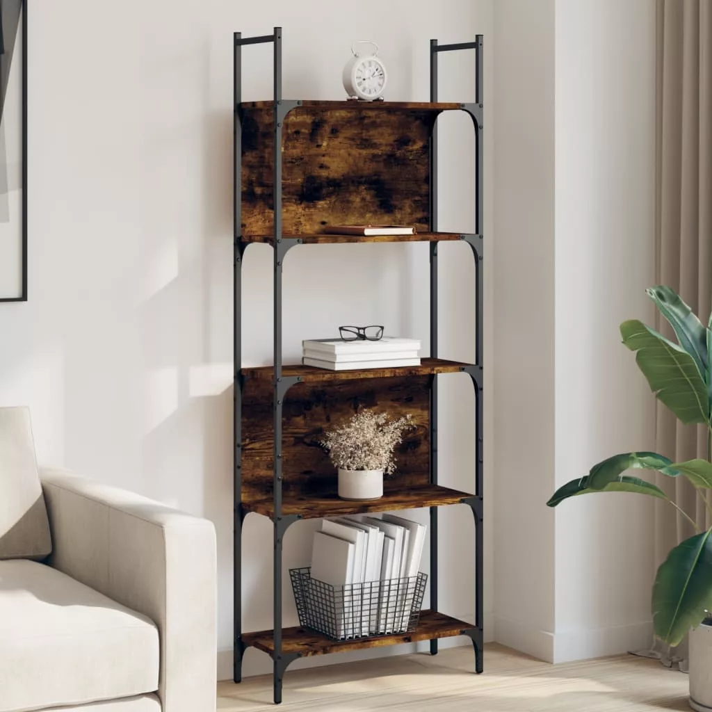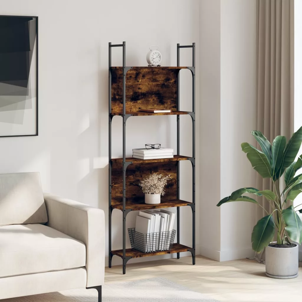 5 szintes füstös tölgy szerelt fa könyvespolc 60,5x24x166,5 cm