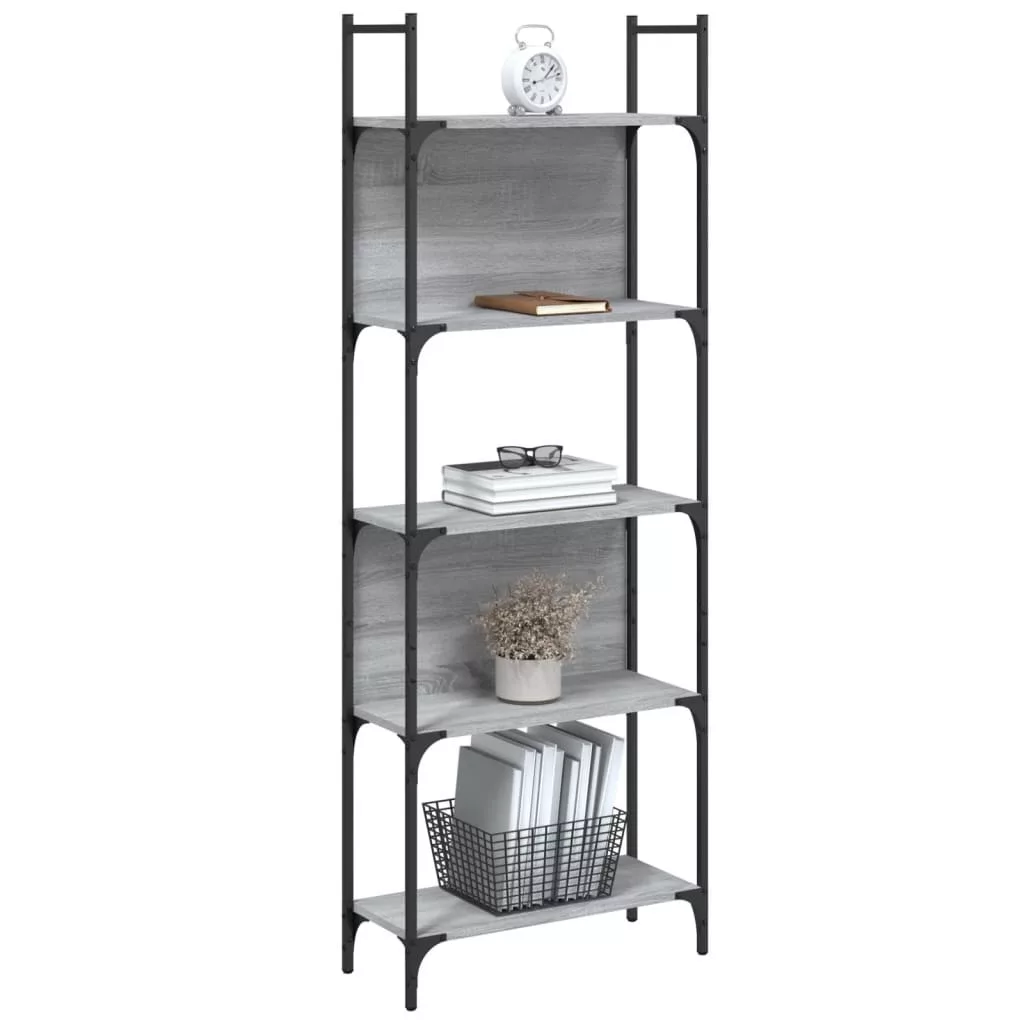 5 szintes szürke sonoma szerelt fa könyvespolc 60,5x24x166,5 cm