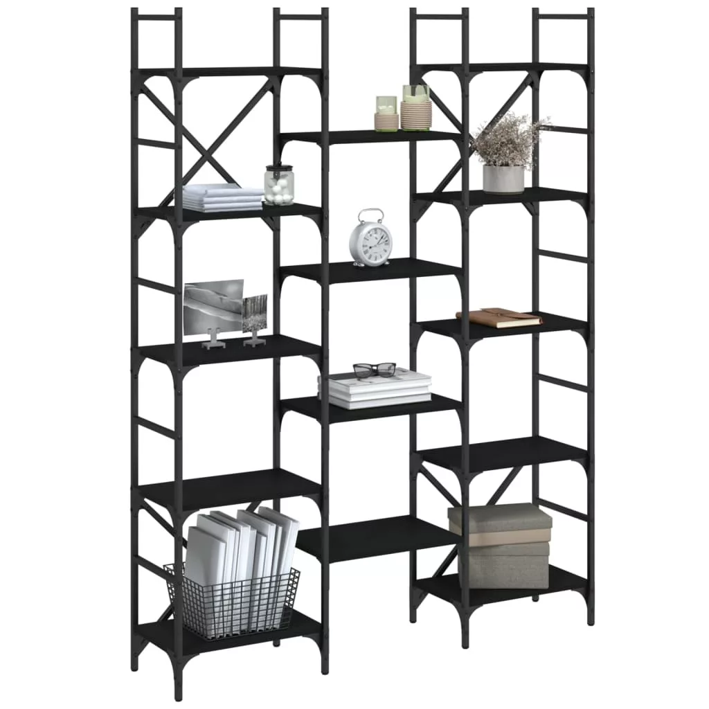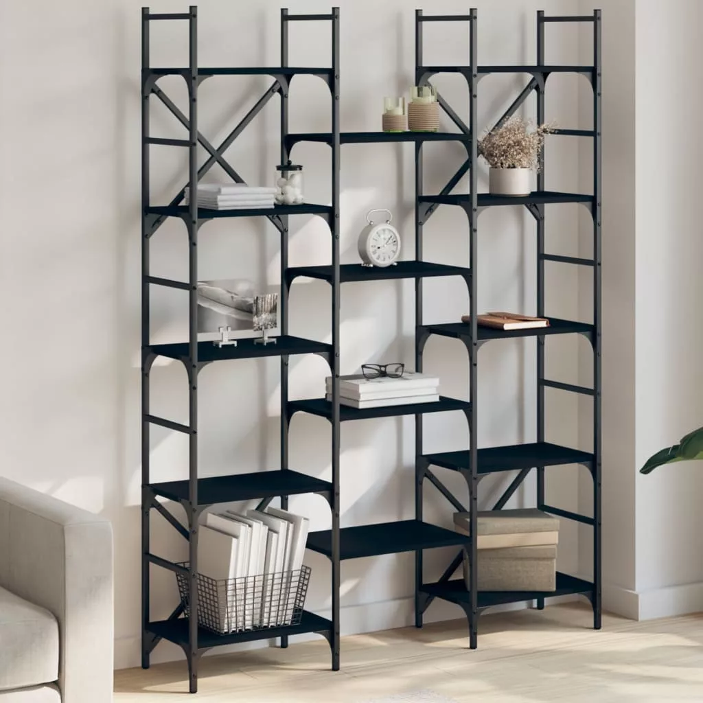 fekete szerelt fa könyvespolc 127,5x28,5x172,5 cm