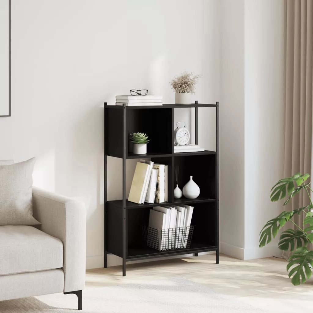 fekete szerelt fa könyvszekrény 72x28x109 cm