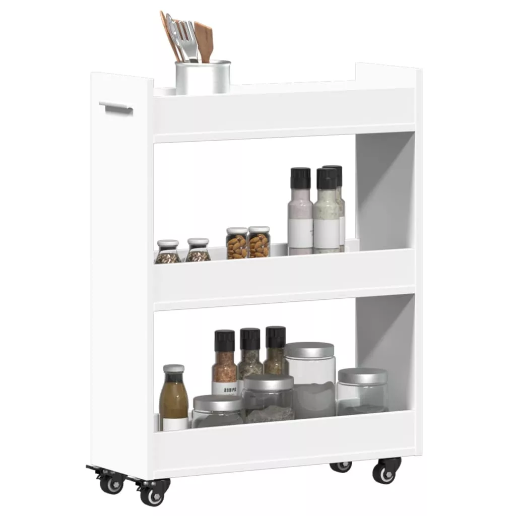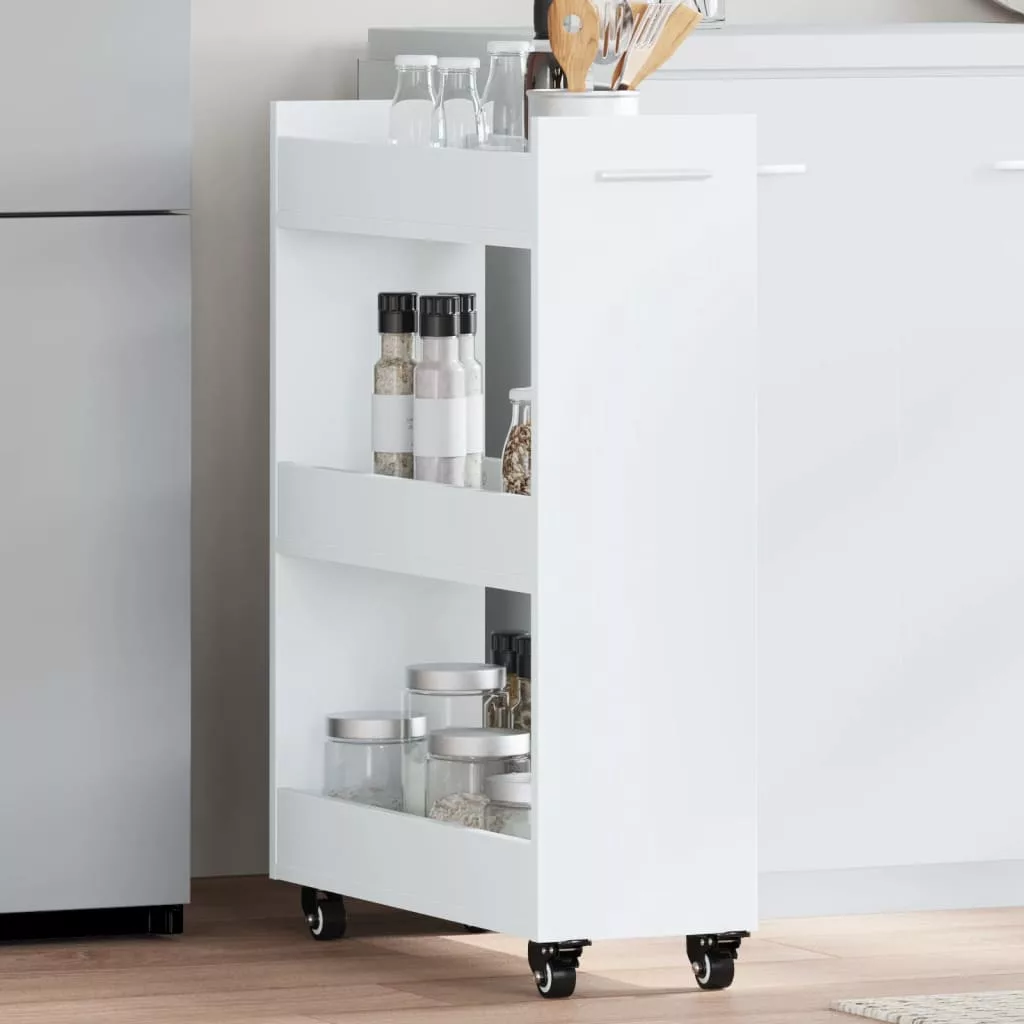 fehér szerelt fa szekrény kerekekkel 60 x 22 x 79 cm